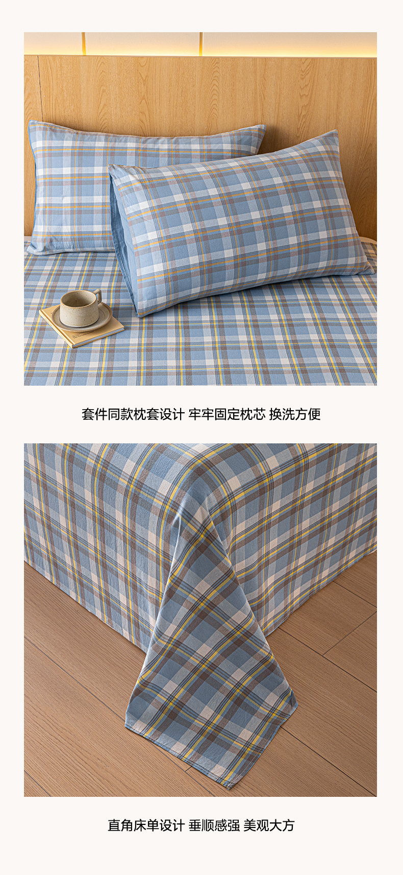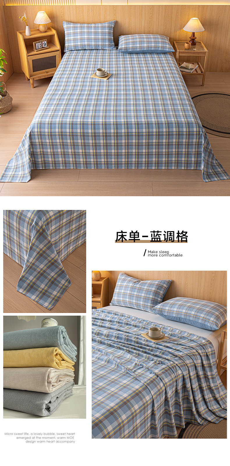 商品名称:雅居纺家纺 2024新款全棉色织水洗棉单床单 床单-蓝调格