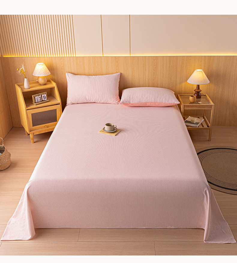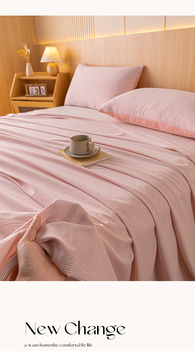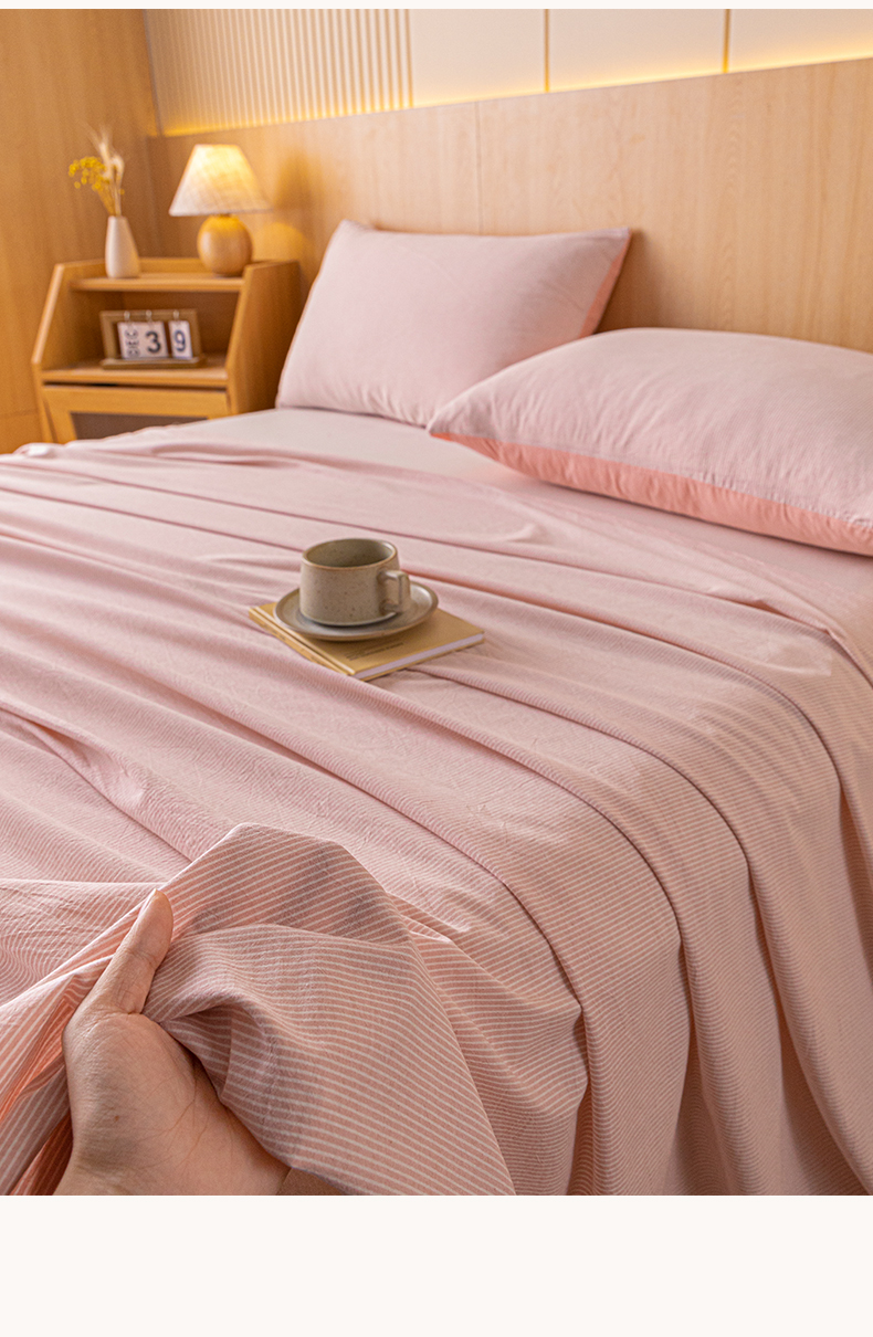 雅居纺家纺 2024新款全棉色织水洗棉单床单 床单-细条粉