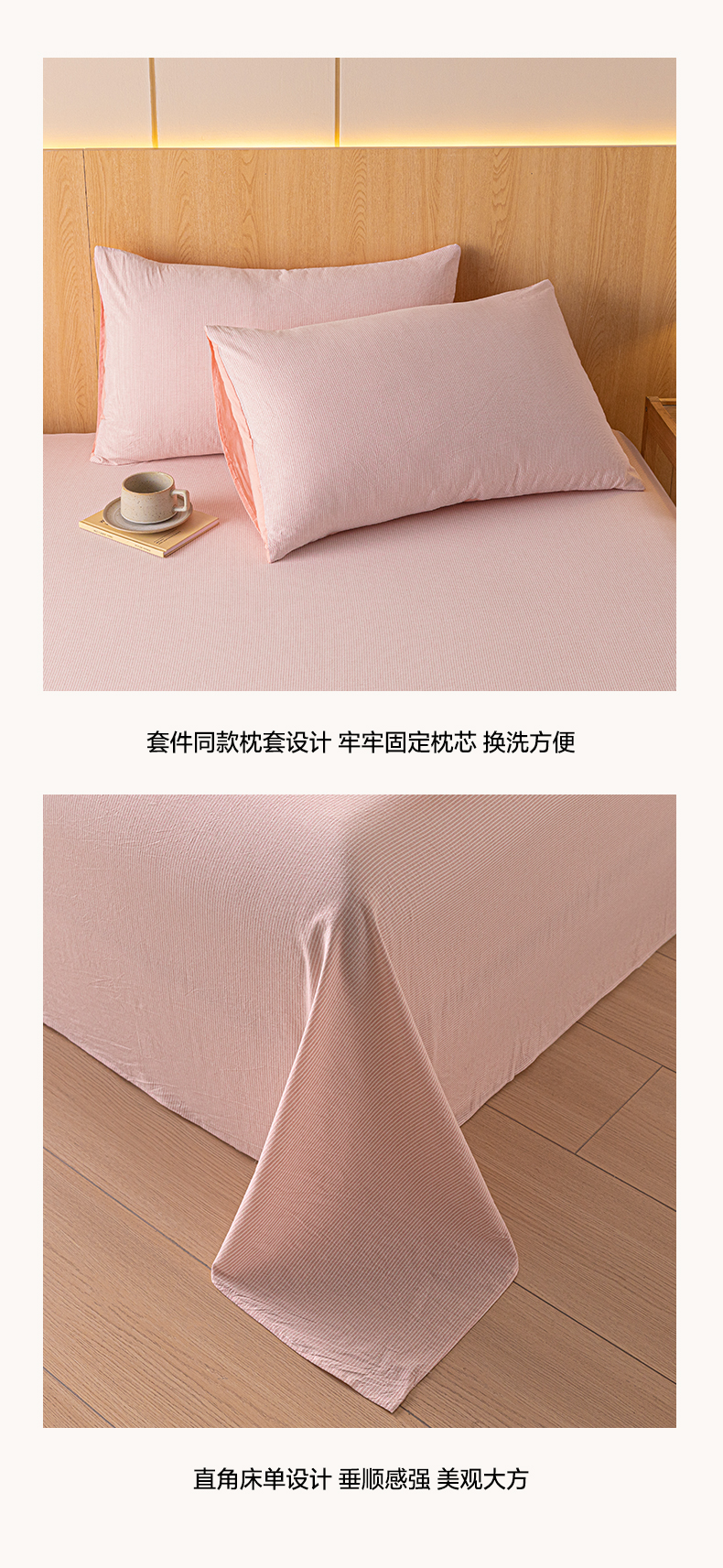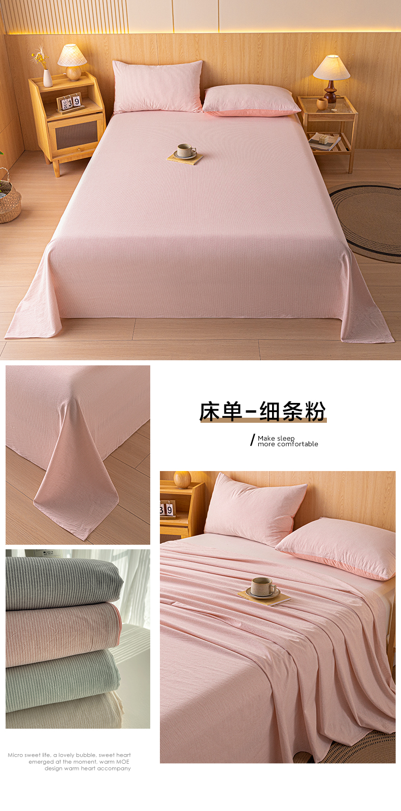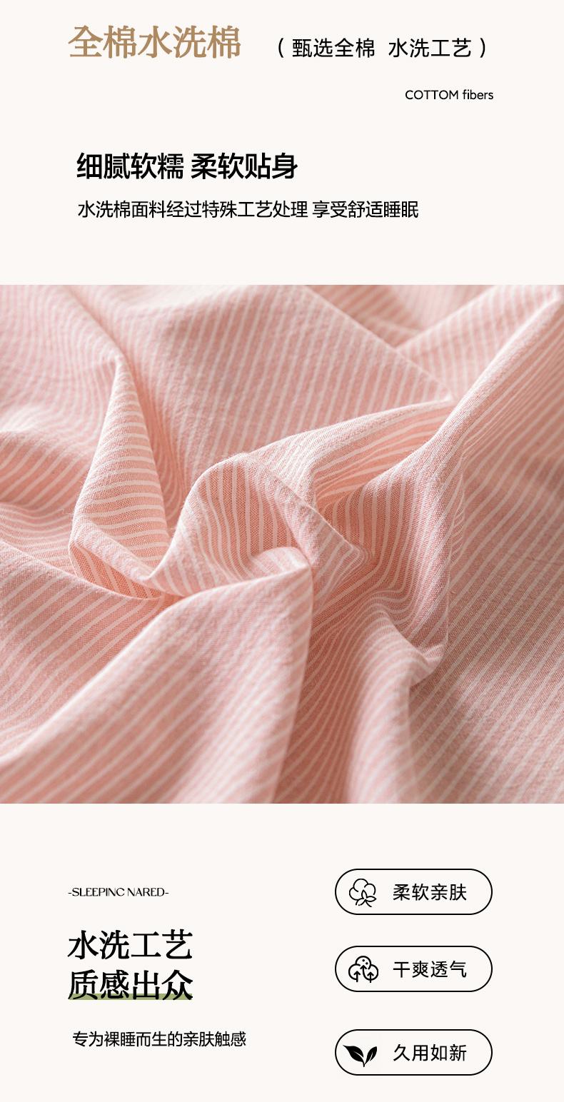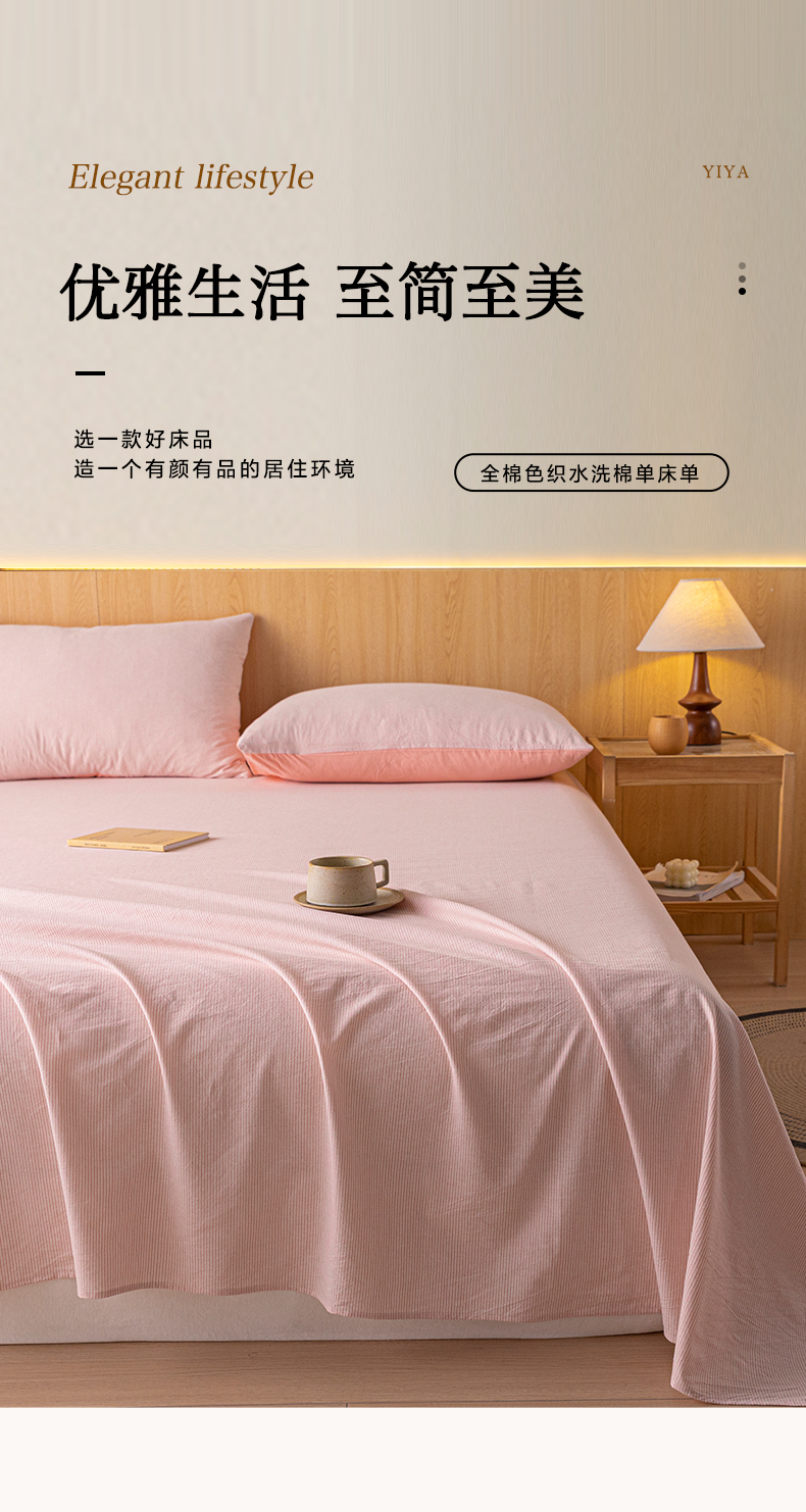商品名称:雅居纺家纺 2024新款全棉色织水洗棉单床单 床单-细条粉