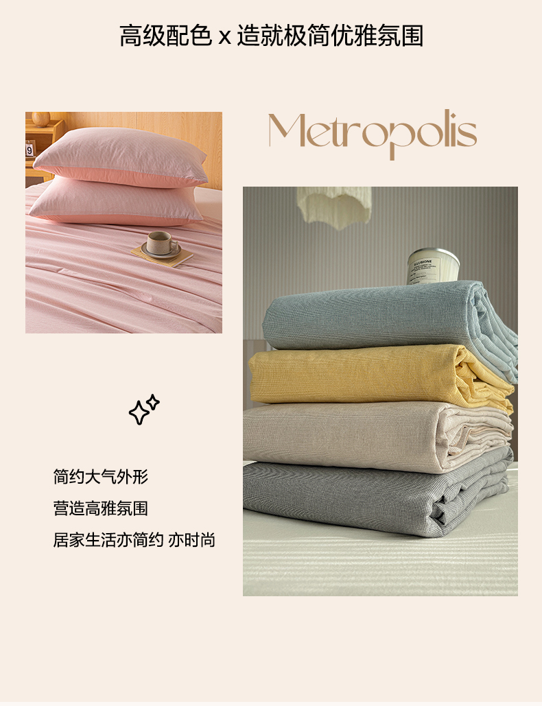 (总)雅居纺家纺 2022新款全棉华夫格普通款四件套,焦糖,米驼,奶油白,柔粉,深灰,雾蓝,月灰