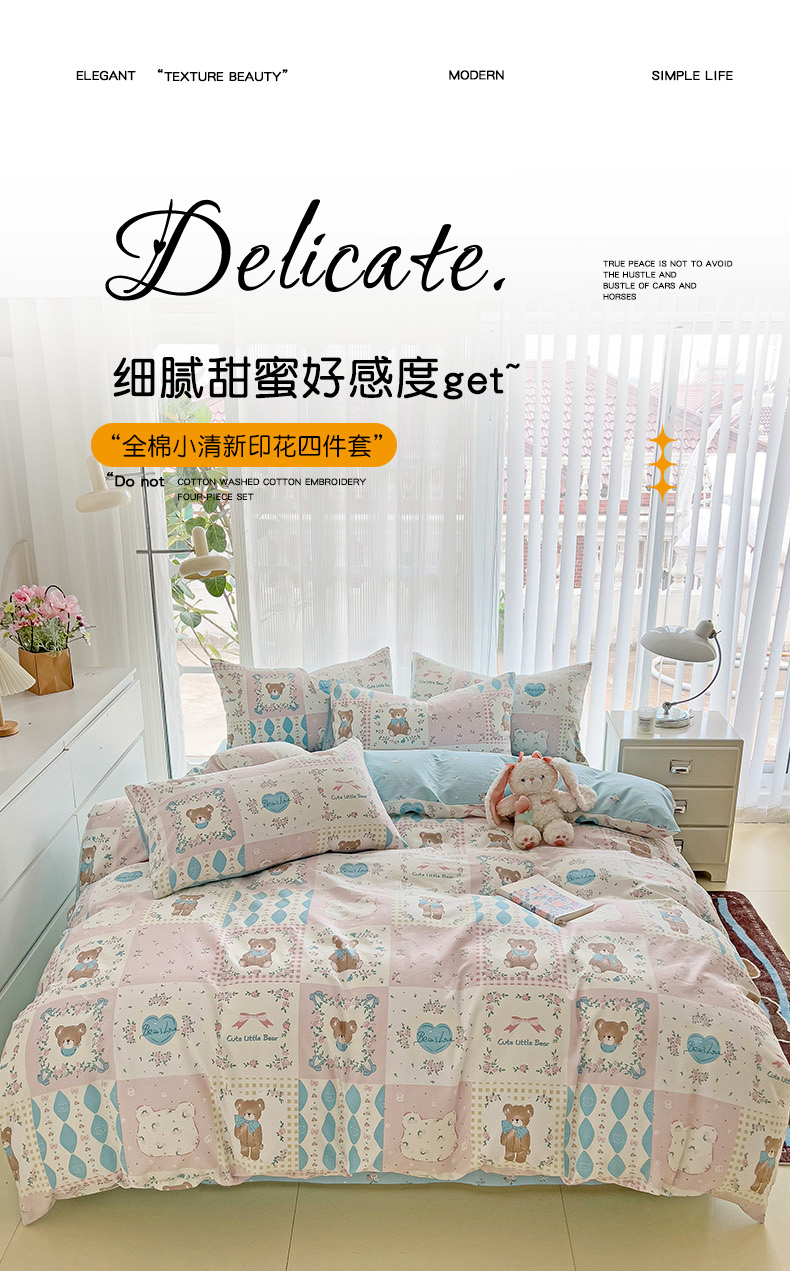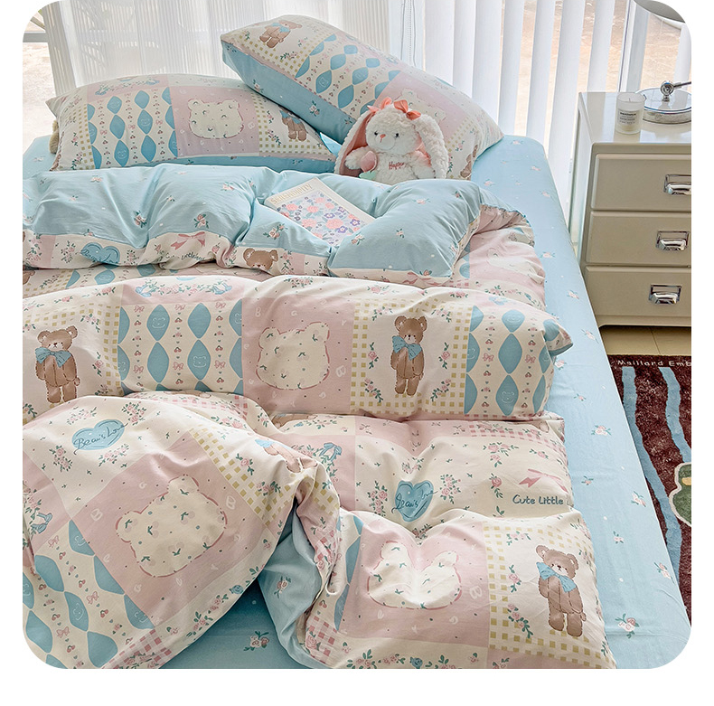 当前位置: 91家纺网 > 商品网购 > 床品套件 > 四件套 > 全棉普通四件套 > 优选良品 2025直播爆款全棉12868印花四件套纯棉学生三件套床笠 格子熊