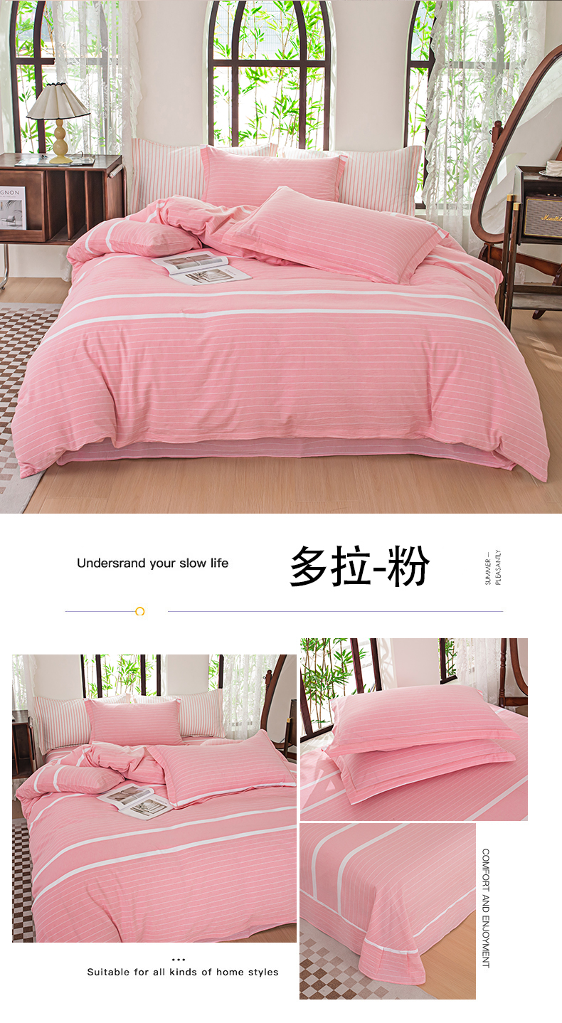 商品名称:喜四方 2024新款色织全棉水洗棉四件套 多拉粉
