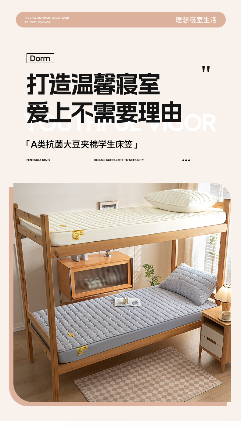 芬晴 2024新款A类抗菌大豆夹棉学生床笠夹棉床笠宿舍床笠跨境电商外贸床笠 艾格-星灰