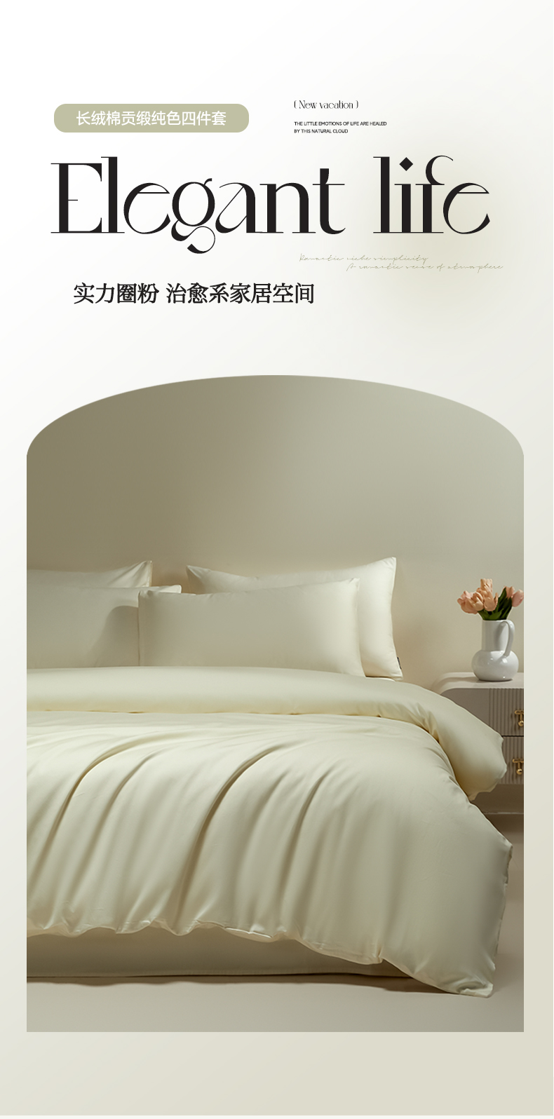 安莱生活 2024新款100s全棉贡缎四件套 月光白