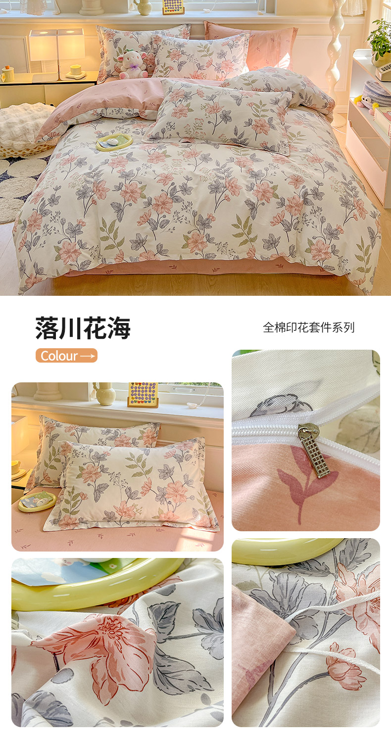 绵庭家纺 2024新款全棉印花套件系列四件套 落川花海