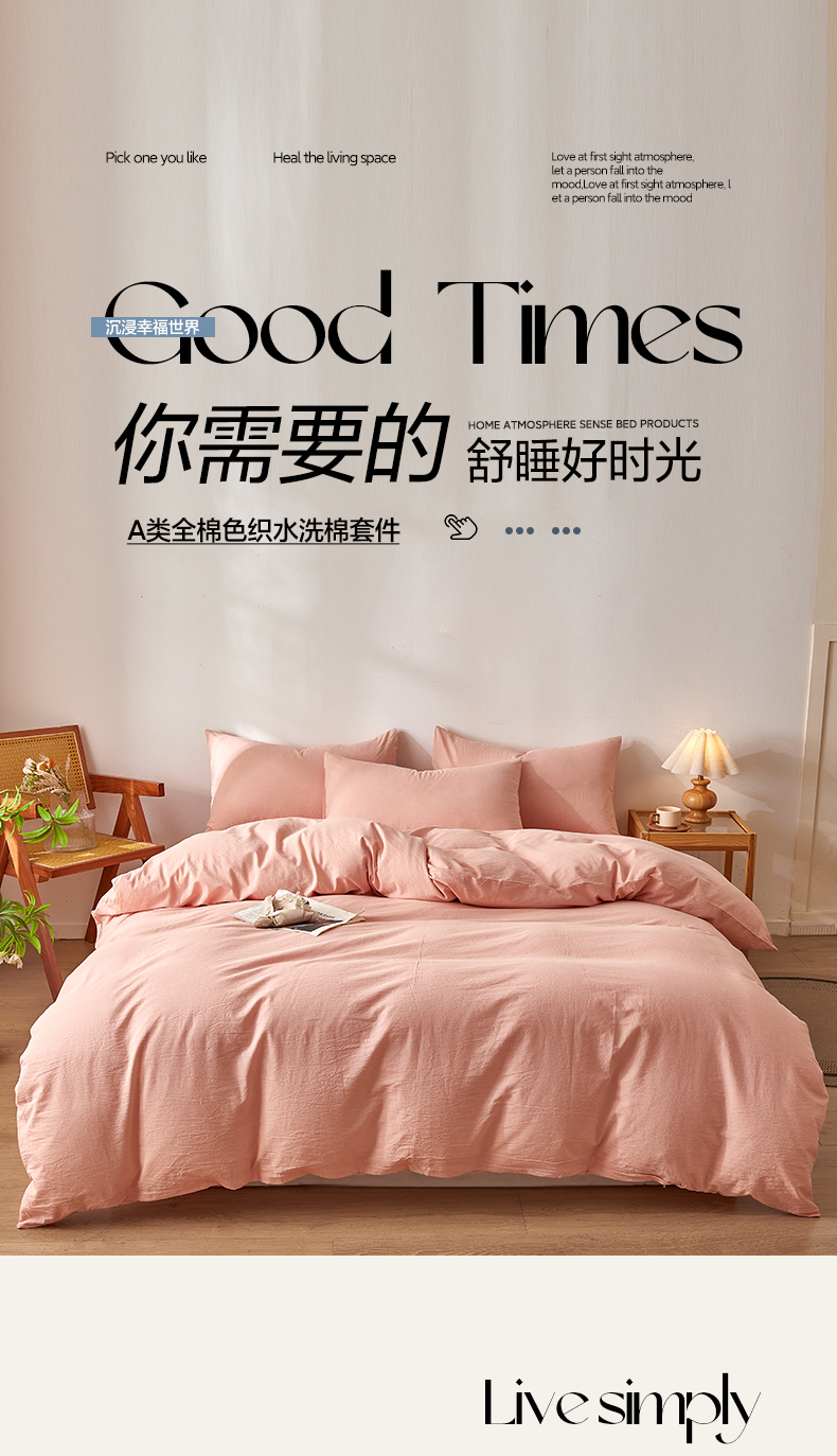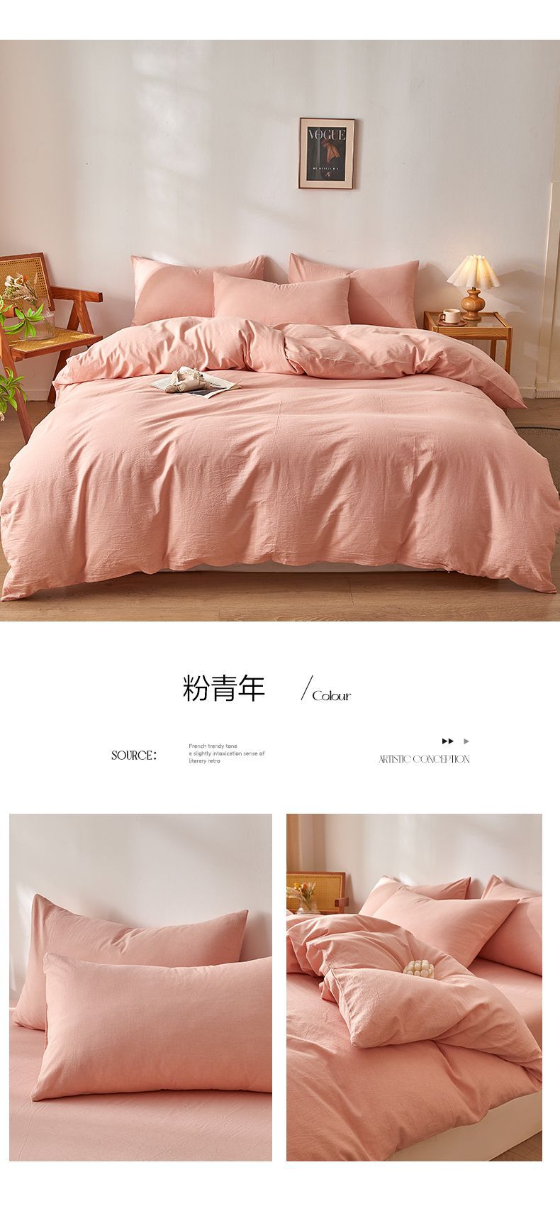 当前位置: 91家纺网 > 商品网购 > 床品套件 > 四件套 > 全棉普通四件套 > 2025新款全棉色织水洗棉四件套被套三件套系列 粉青年