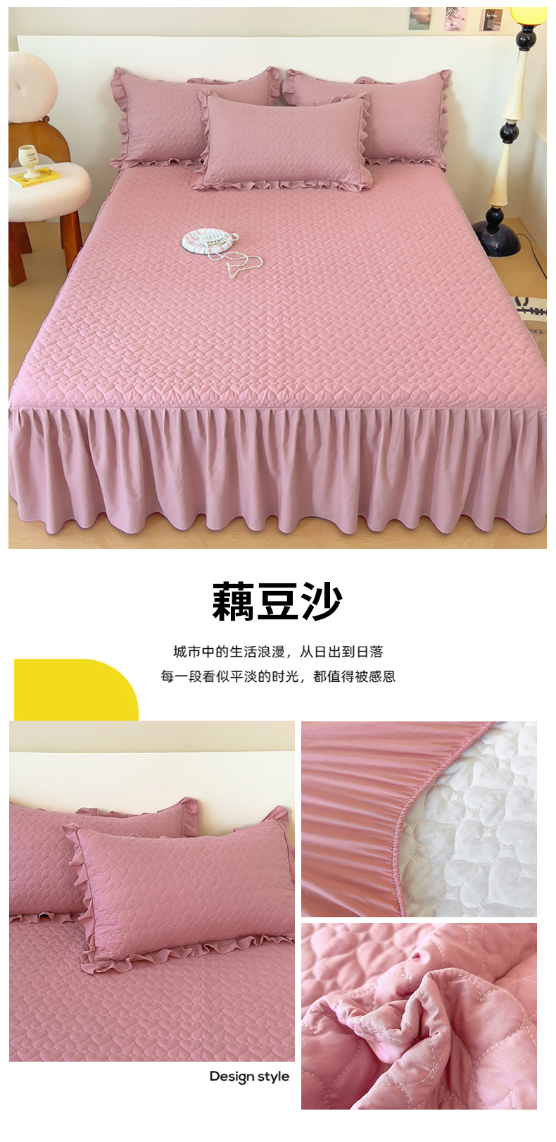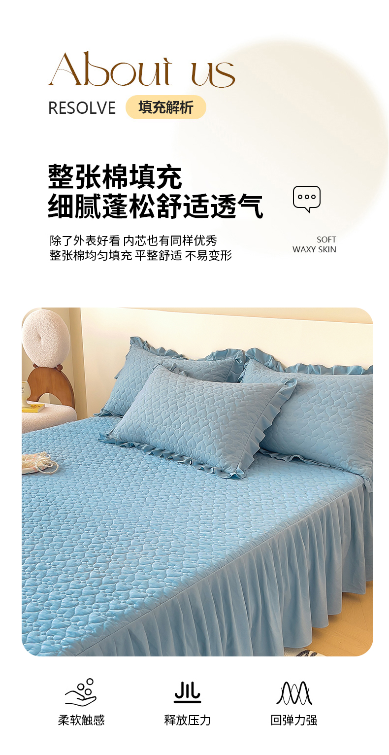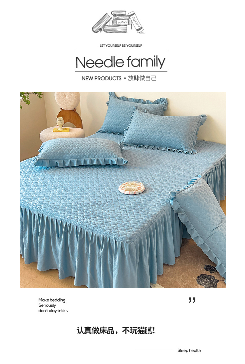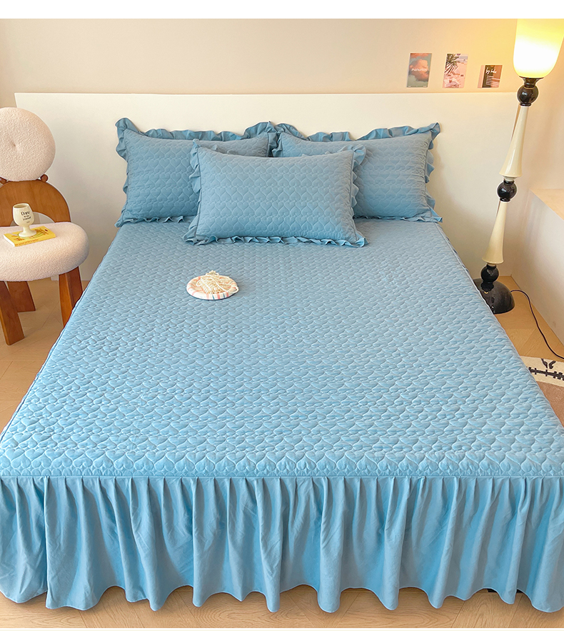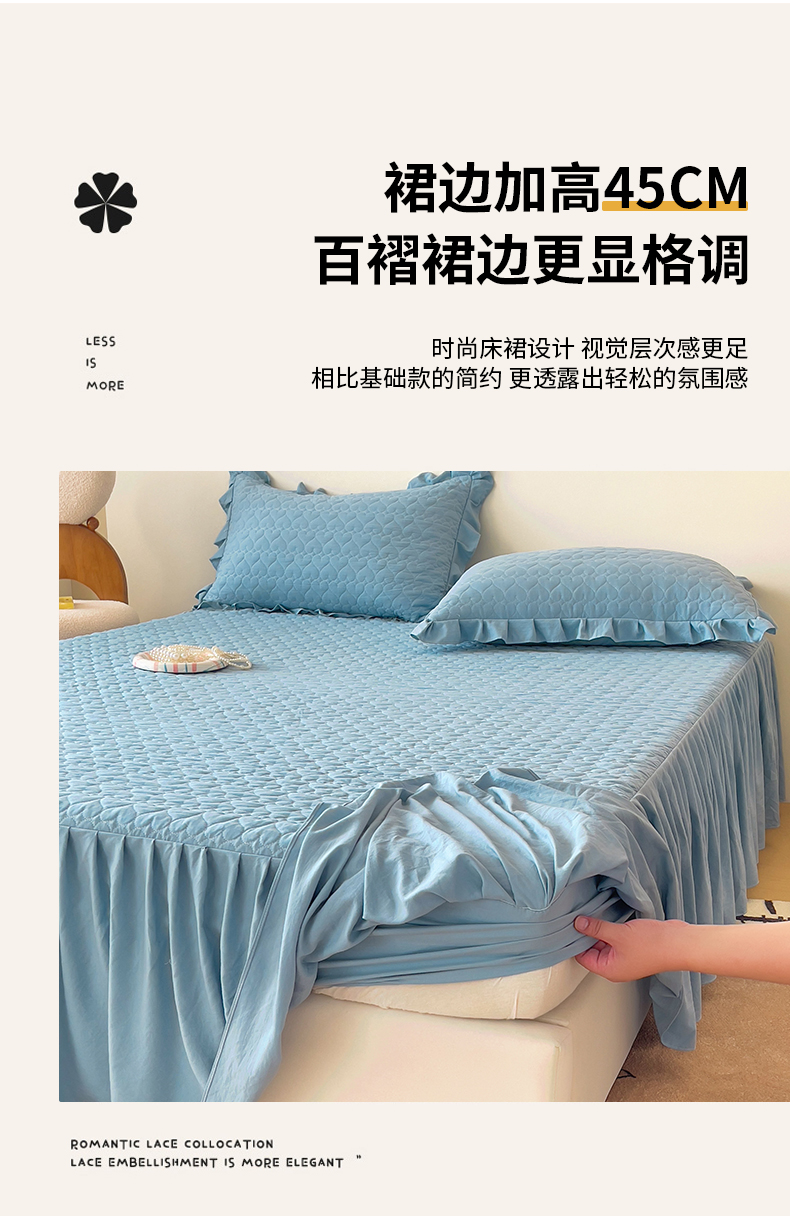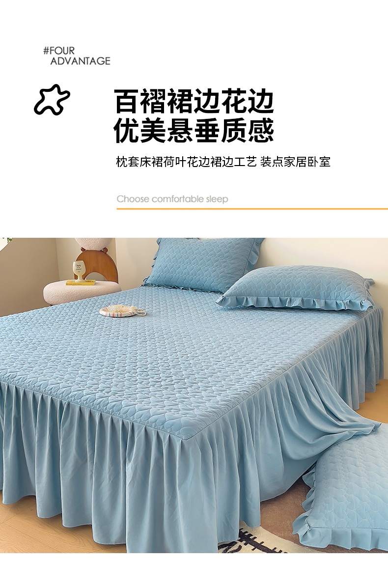 (总)屹成家纺2025新款水晶绒夹棉绗缝蕾丝床裙三件套(塞纳河畔)床裙单件起售价不低于105元,大红,豆沙,翡翠绿,粉玉,橄榄绿,蔚蓝,银灰