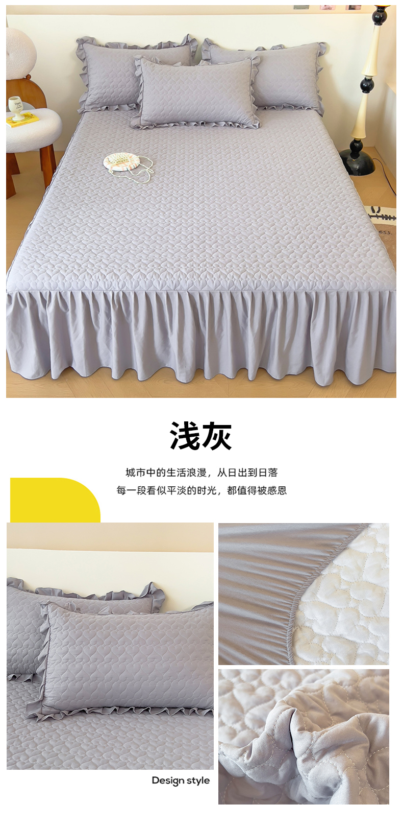 (总)屹成家纺 2024新款天竺棉夹棉床裙,玳瑁紫,典雅驼,豆沙,格调蓝,经典灰,孔雀绿