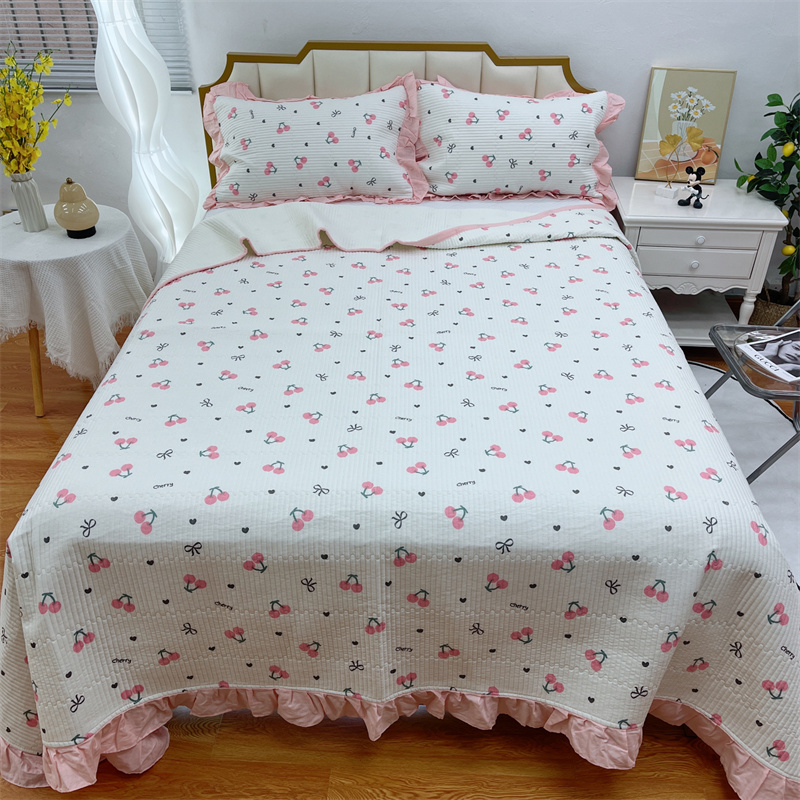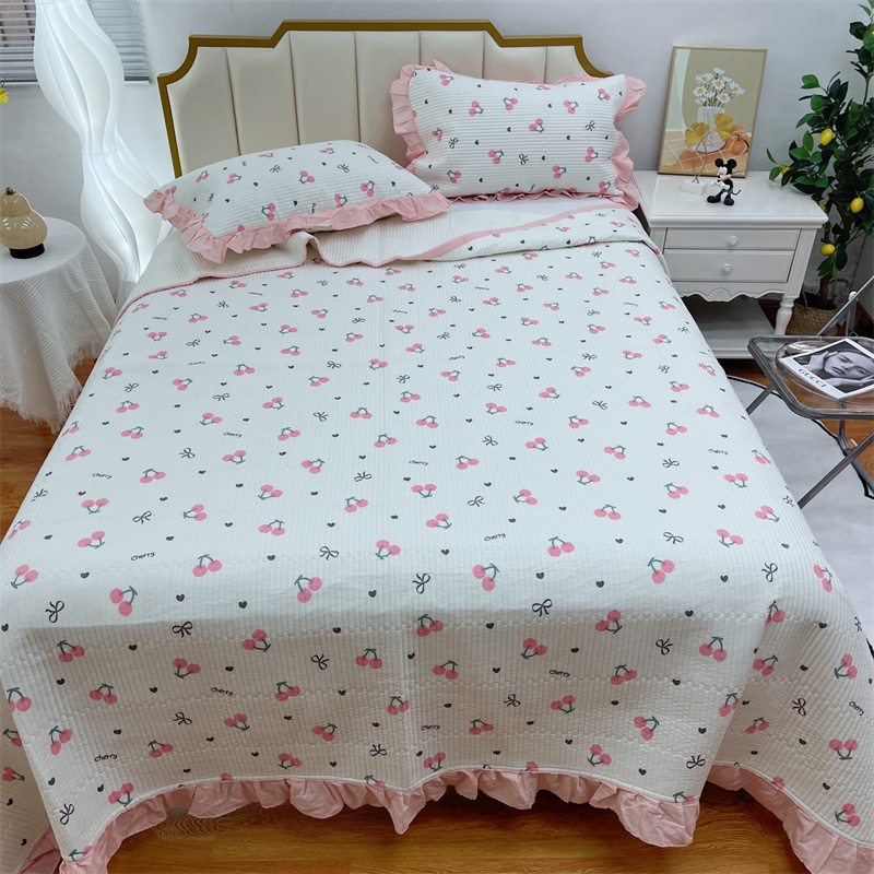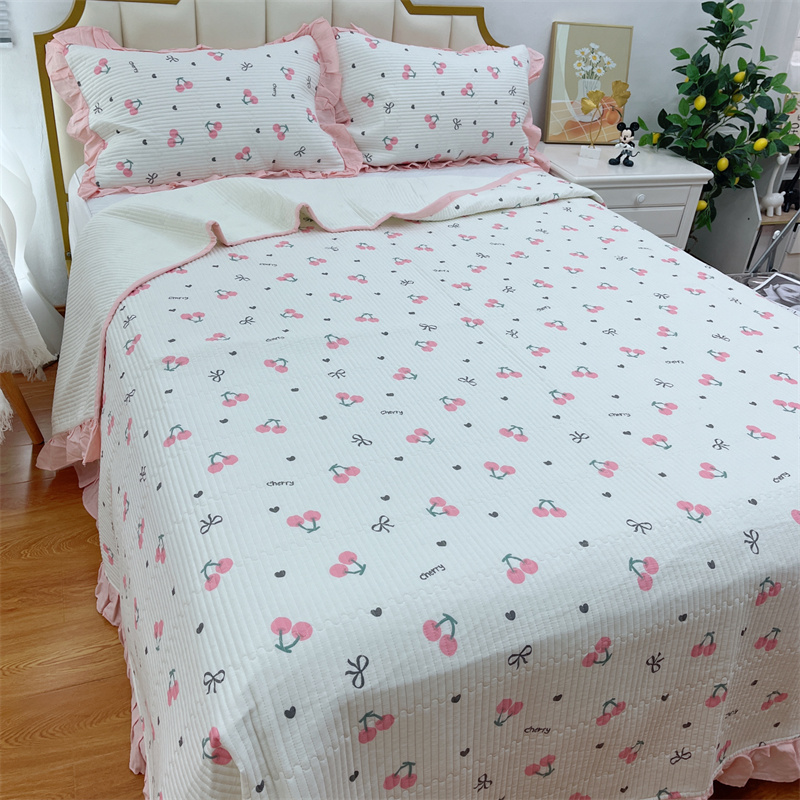 商品名称:暖居 2024新款A类双层纱全棉床盖三件套防滑不跑床绗缝加厚纯棉床单 爱心樱桃