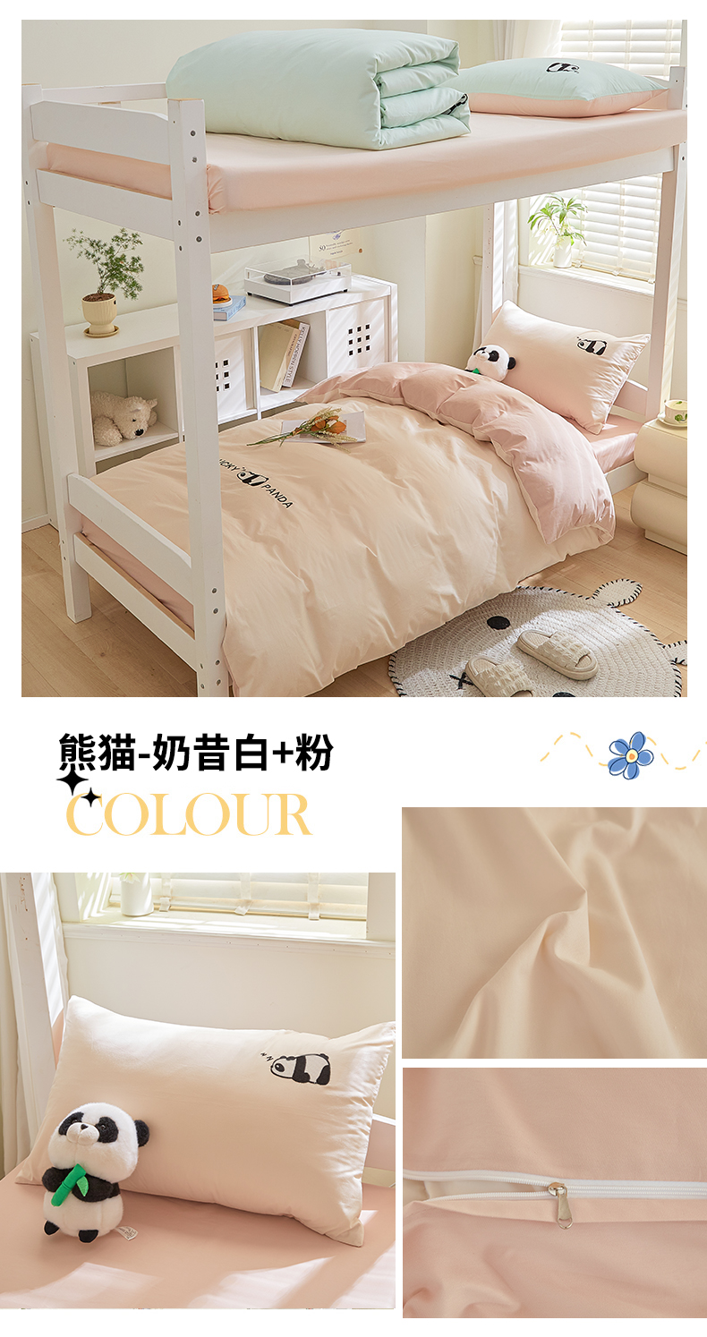 当前位置: 91家纺网 > 商品网购 > 床品套件 > 三件套 > 慕色家纺 2024新款全棉学生宿舍三件套家用刺绣四件套 熊猫-奶昔白+奶茶