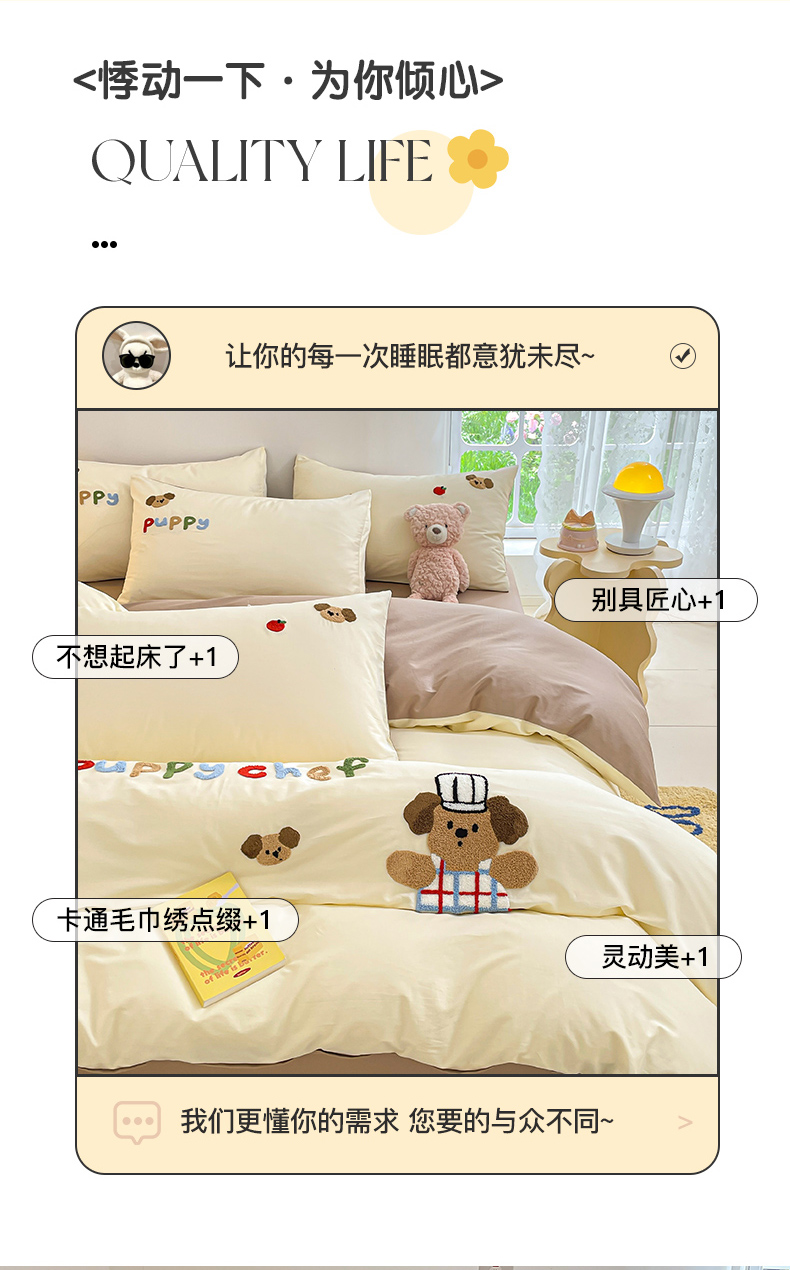 商品名称:(总)丽美人家纺 2024新款水洗棉毛巾绣卡通四件套