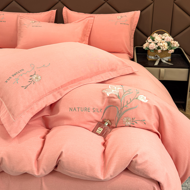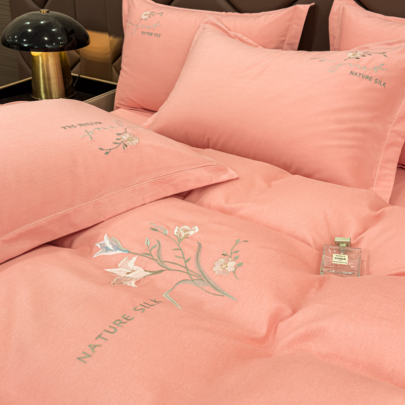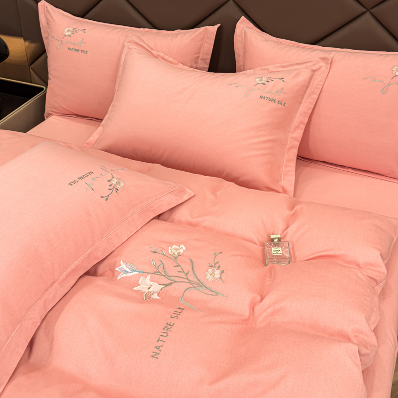 当前位置: 91家纺网 > 商品网购 > 床品套件 > 四件套 > 普通磨毛四件套 > U品汇 2024新品生态加厚长绒棉纯棉绣花全棉磨毛刺绣四件套直播 百合欢-樱花粉
