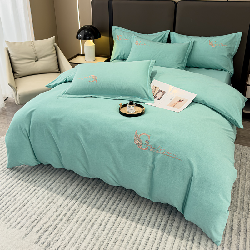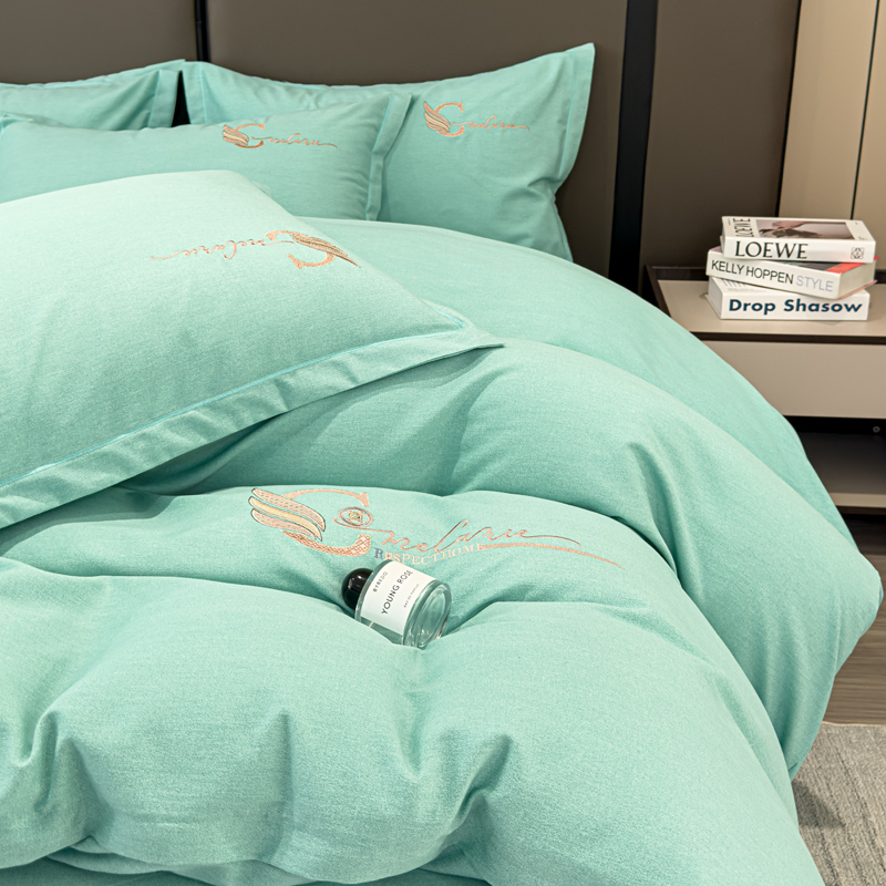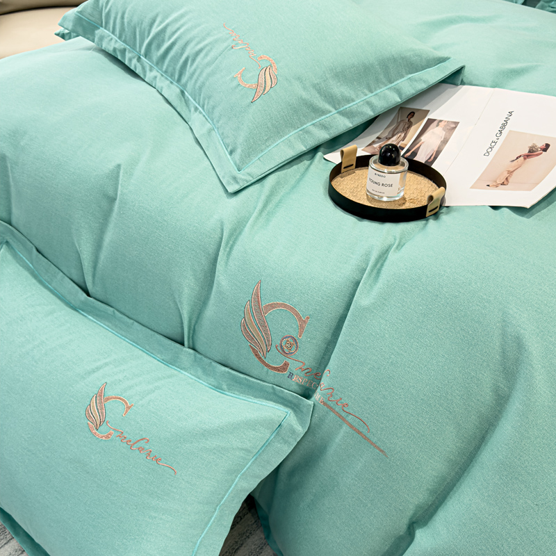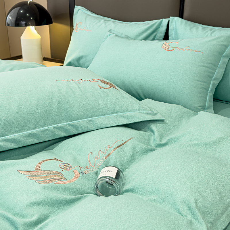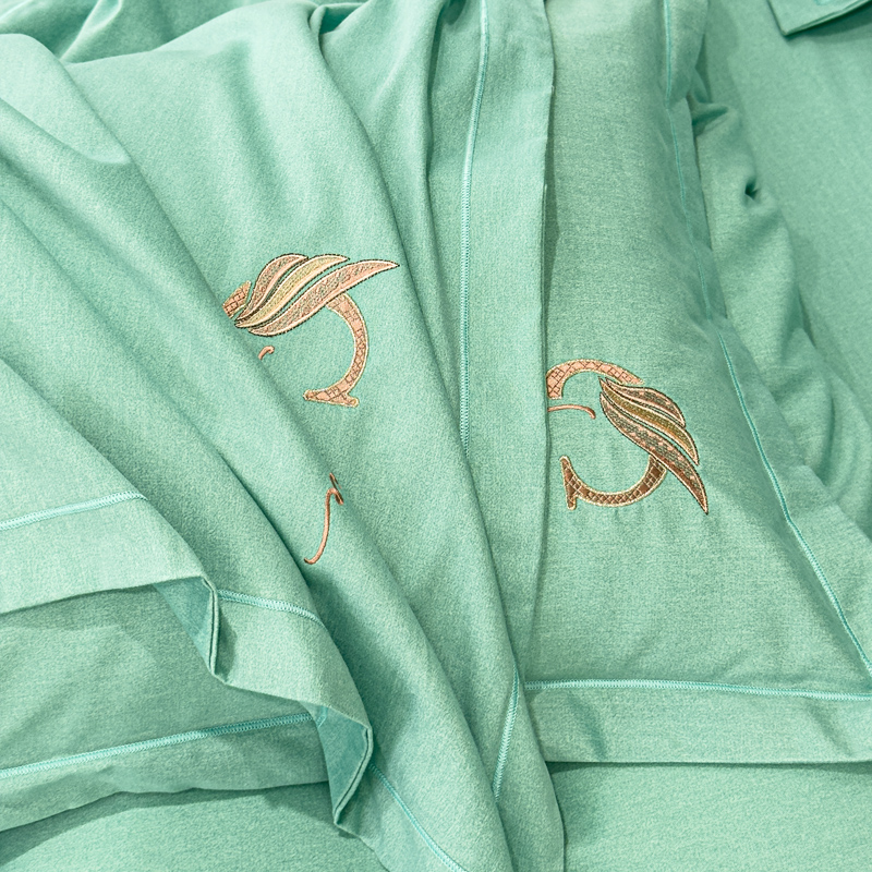 当前位置: 91家纺网 > 商品网购 > 床品套件 > 四件套 > 普通磨毛四件套 > U品汇 2024新品生态加厚长绒棉纯棉绣花全棉磨毛刺绣四件套直播 飞羽-清新绿