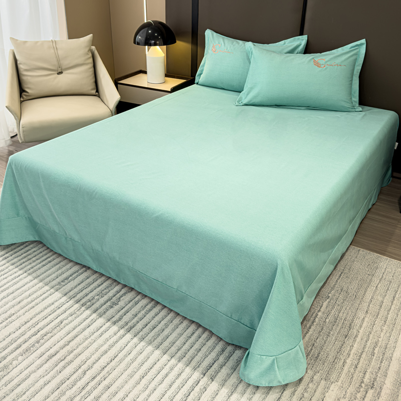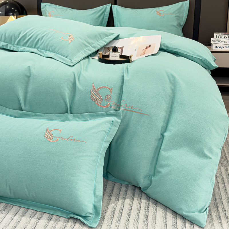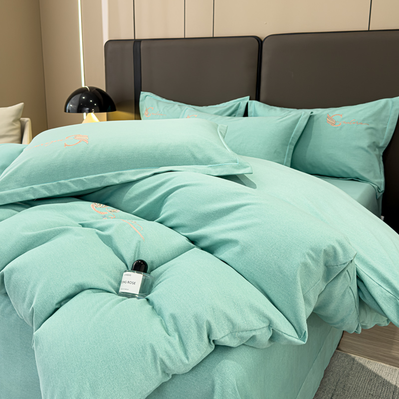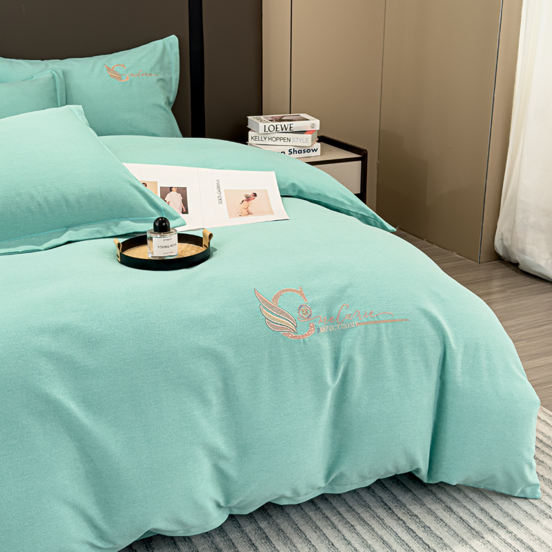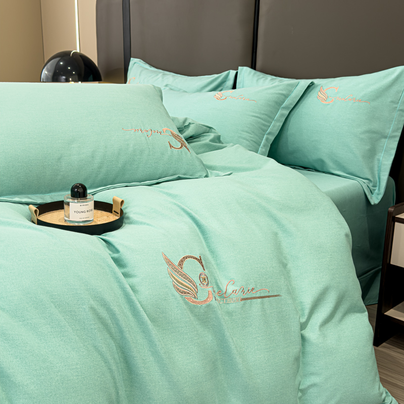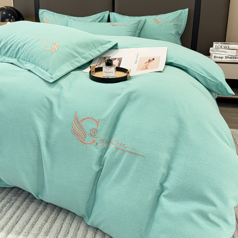 当前位置: 91家纺网 > 商品网购 > 床品套件 > 四件套 > 普通磨毛四件套 > U品汇 2024新品生态加厚长绒棉纯棉绣花全棉磨毛刺绣四件套直播 飞羽-清新绿