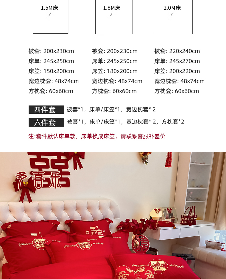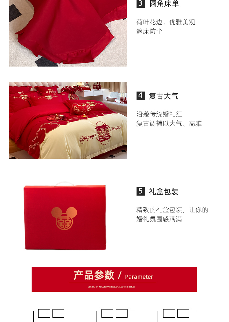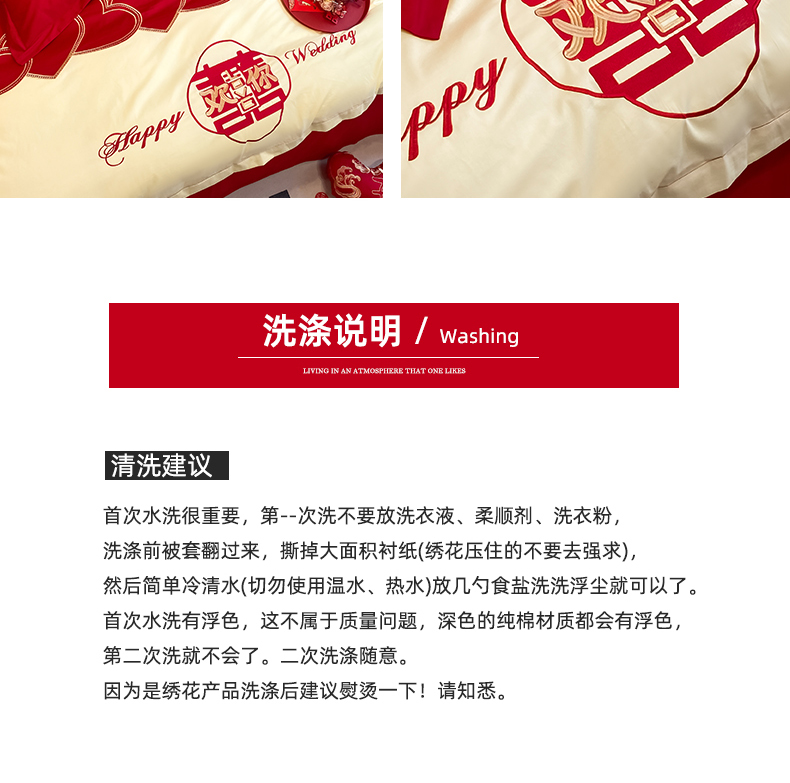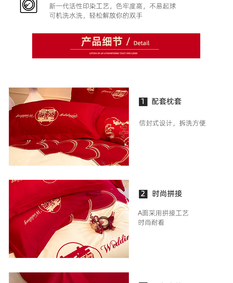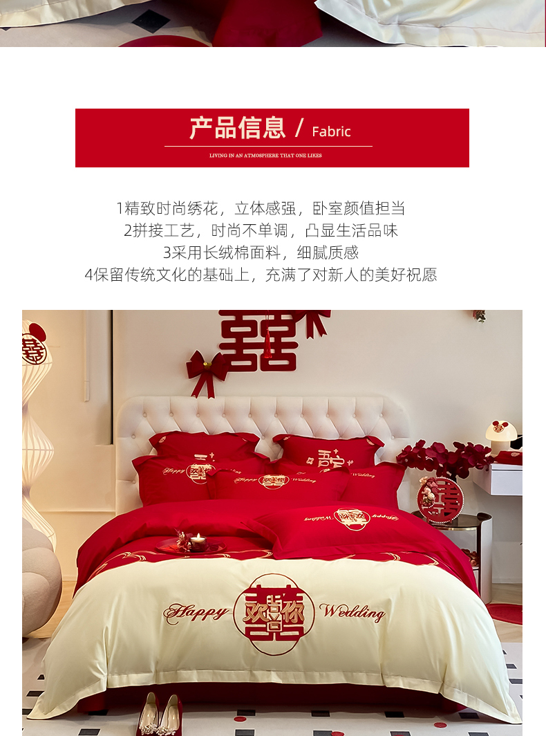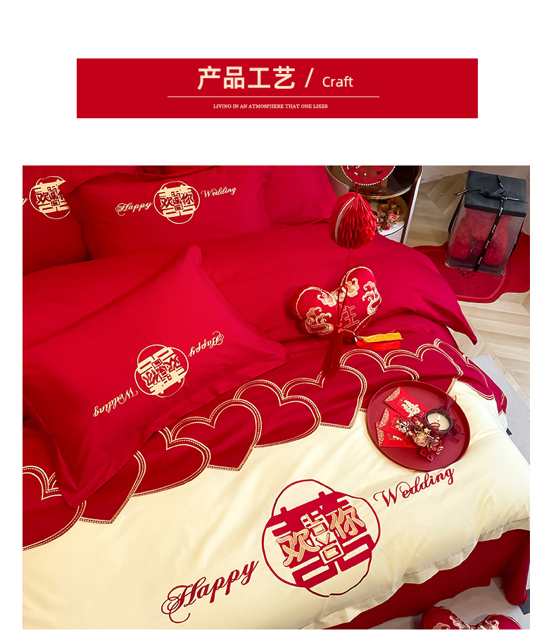 当前位置: 91家纺网 > 商品网购 > 床品套件 > 四件套 > 婚庆四件套 > 玉雅家纺 2025新款60支长绒棉时尚拼色浮雕刺绣婚庆四件套 佳偶