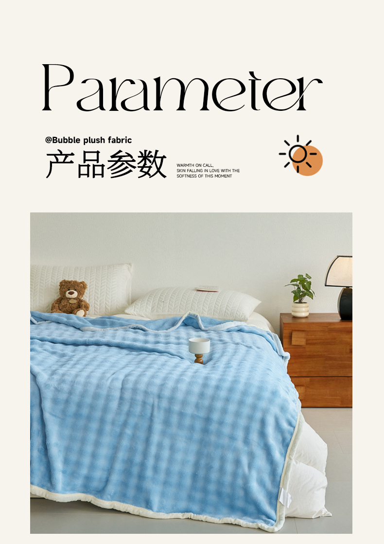 商品名称:2025新款300gsm舒适亲肤泡泡绒毛毯 天空蓝