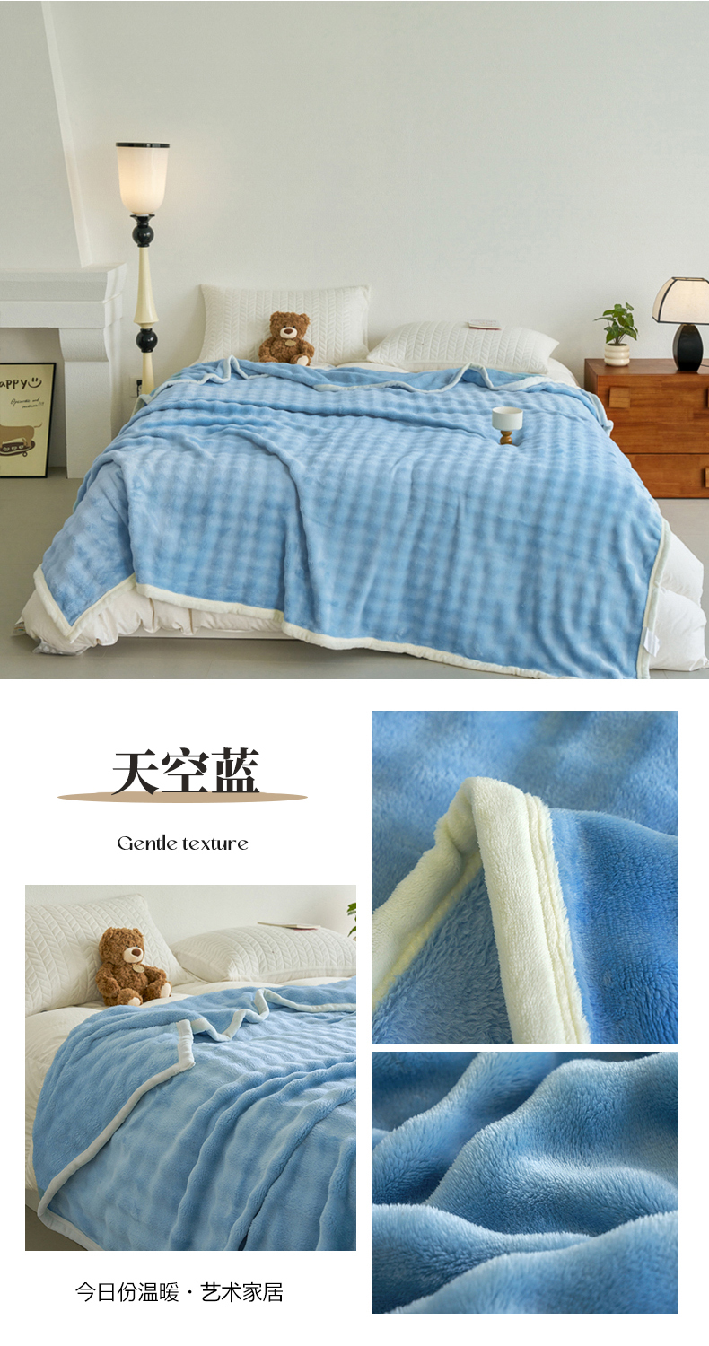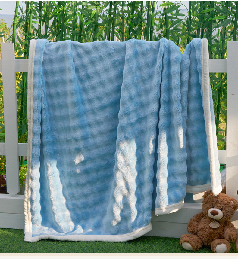 2025新款300gsm舒适亲肤泡泡绒毛毯 天空蓝