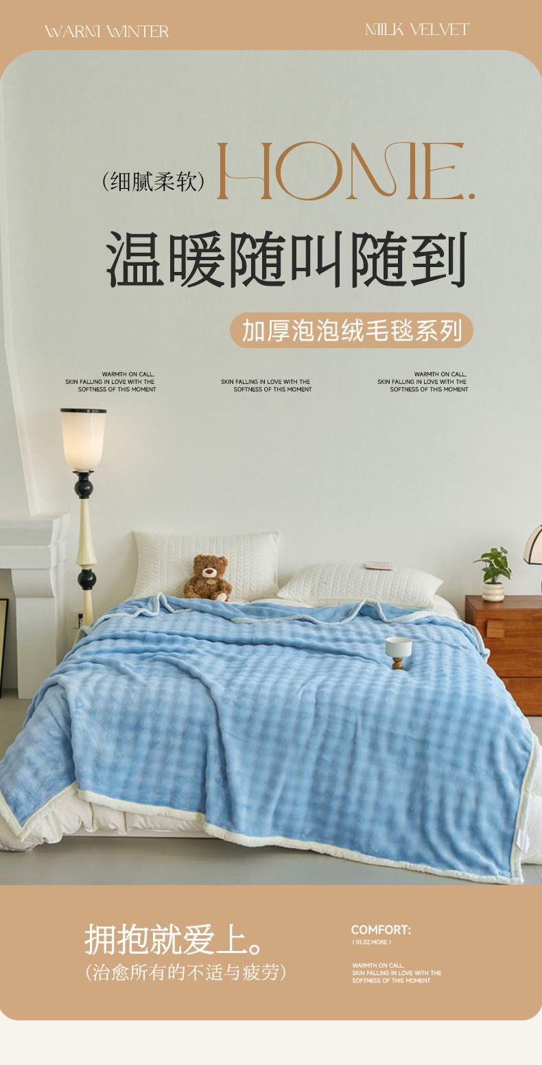 (总)2025新款300gsm舒适亲肤泡泡绒毛毯,卡其色,梦幻紫,米色,牛油果绿,气质灰,天空蓝,樱花粉