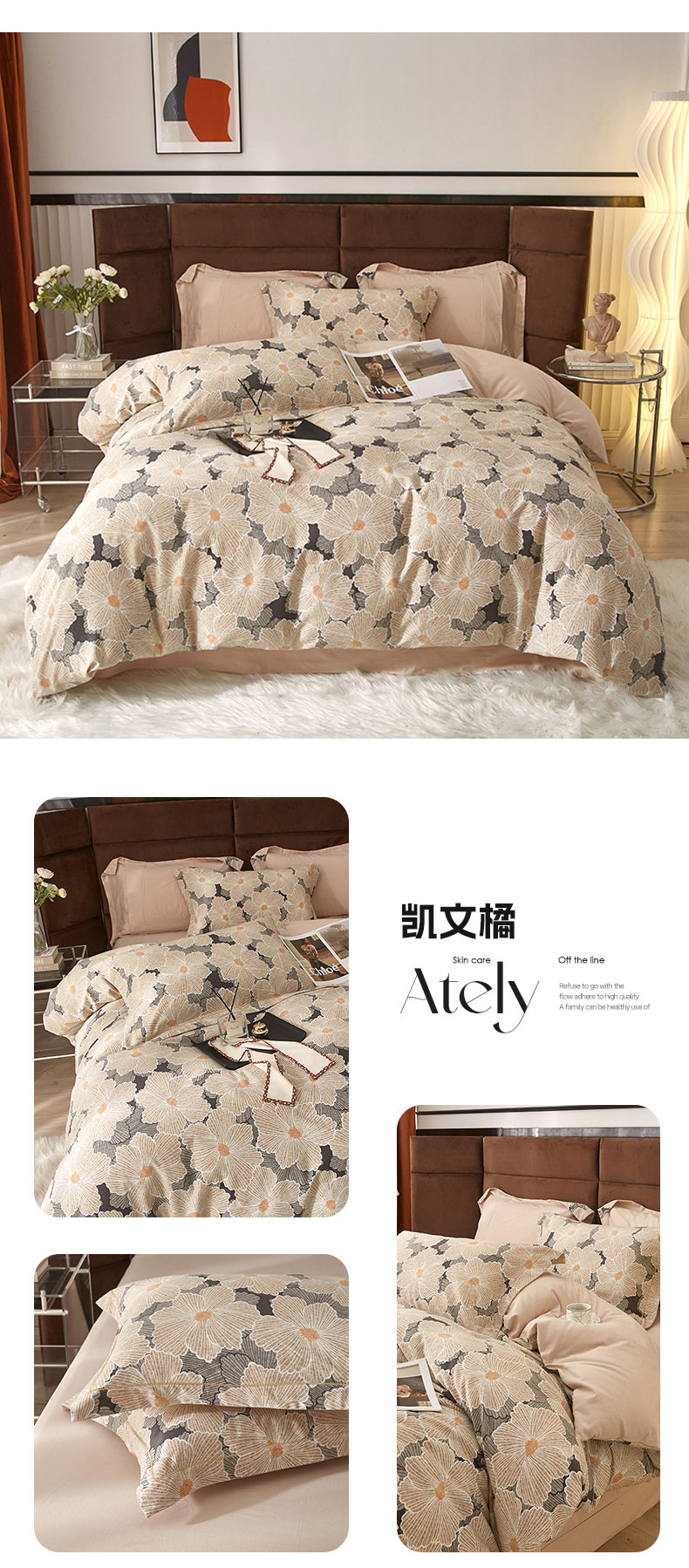2025新款全棉精梳磨毛印花四件套 凯文橘