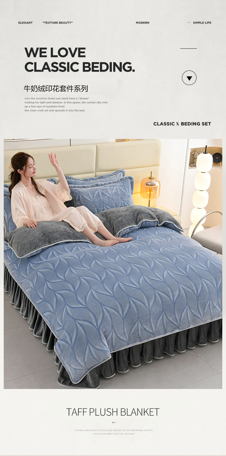 绒品壹家 2025新款电商直播爆款高克重7斤牛奶绒金貂绒印花床裙款三件套四件套 欧曼情调,欧曼情调