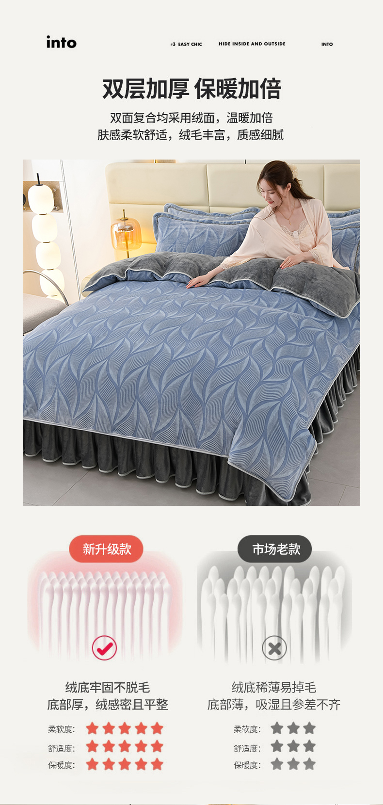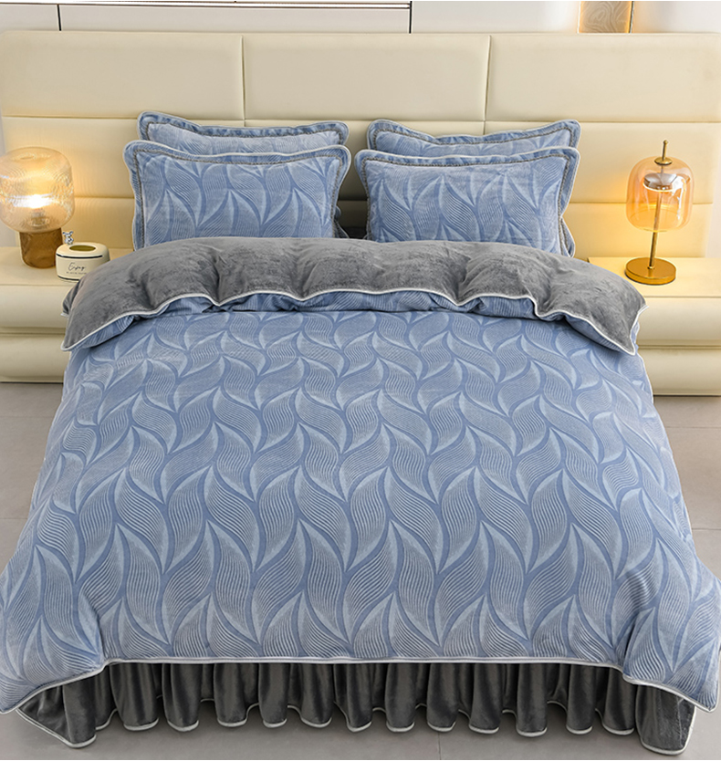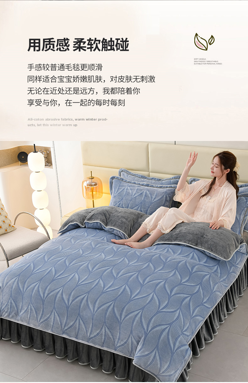 (总)绒品壹家 2025新款电商直播爆款高克重5斤牛奶绒金貂绒印花床裙款三件套四件套,发财树,花好月圆,花花绿绿,花开富贵,棋盘格,钱兔似锦,荣华富贵,时尚绽放,相伴一生,幸福满园,叶叶思语,一见倾心 蓝,郁金香,欢乐兔黄
