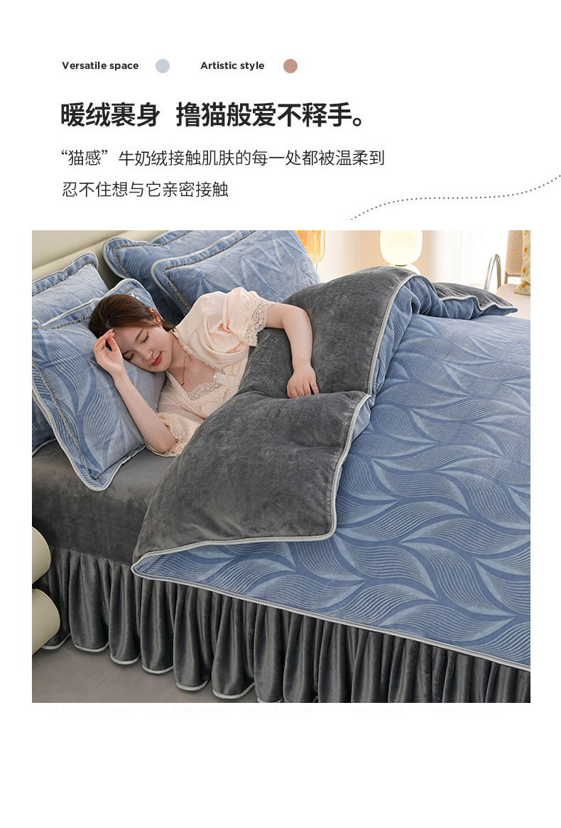 商品名称:绒品壹家家纺 2024新款180g7斤牛奶绒印花四件套 素色主义-灰