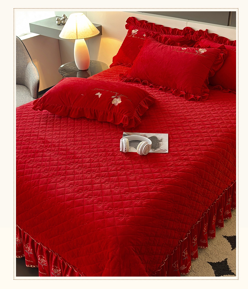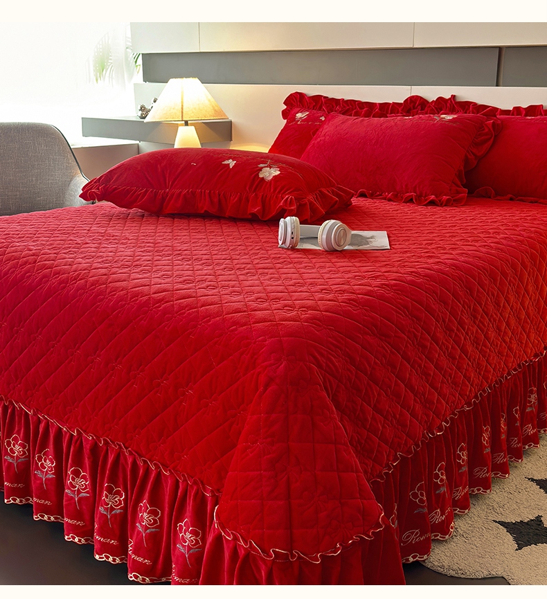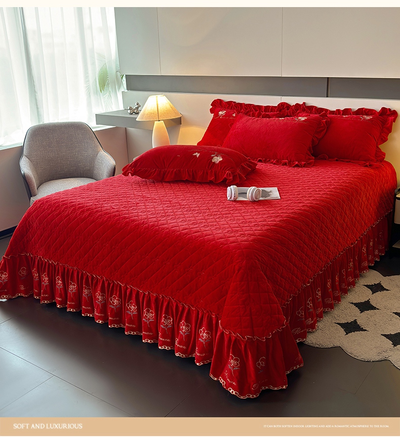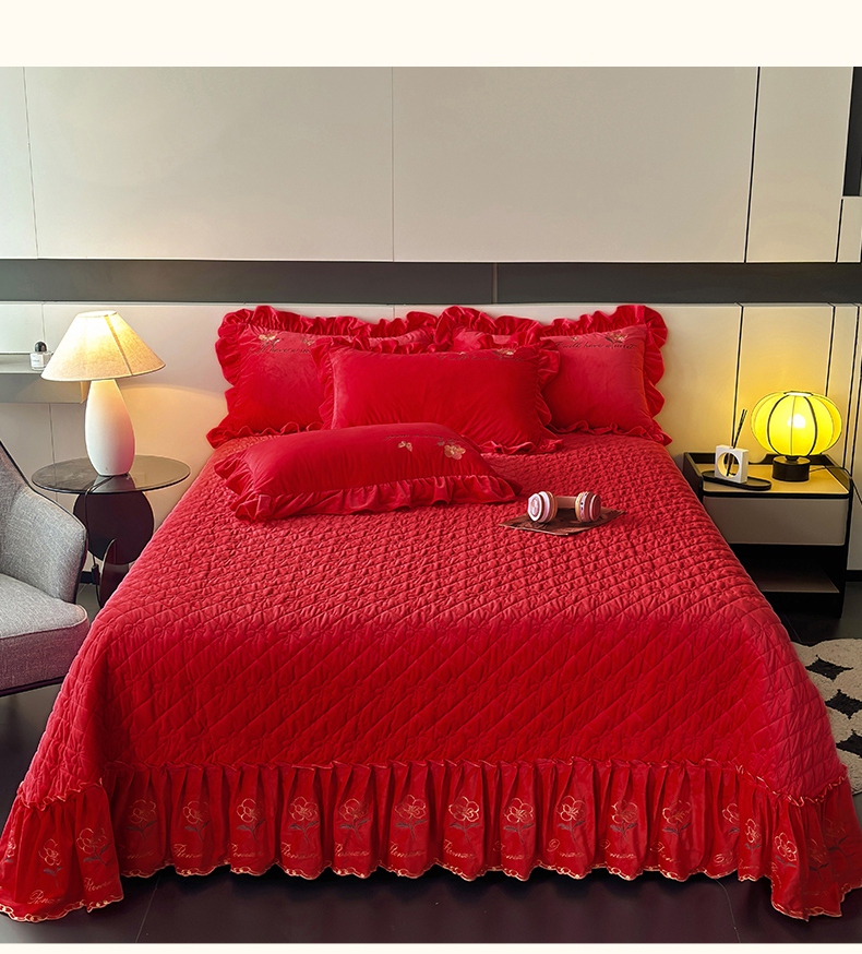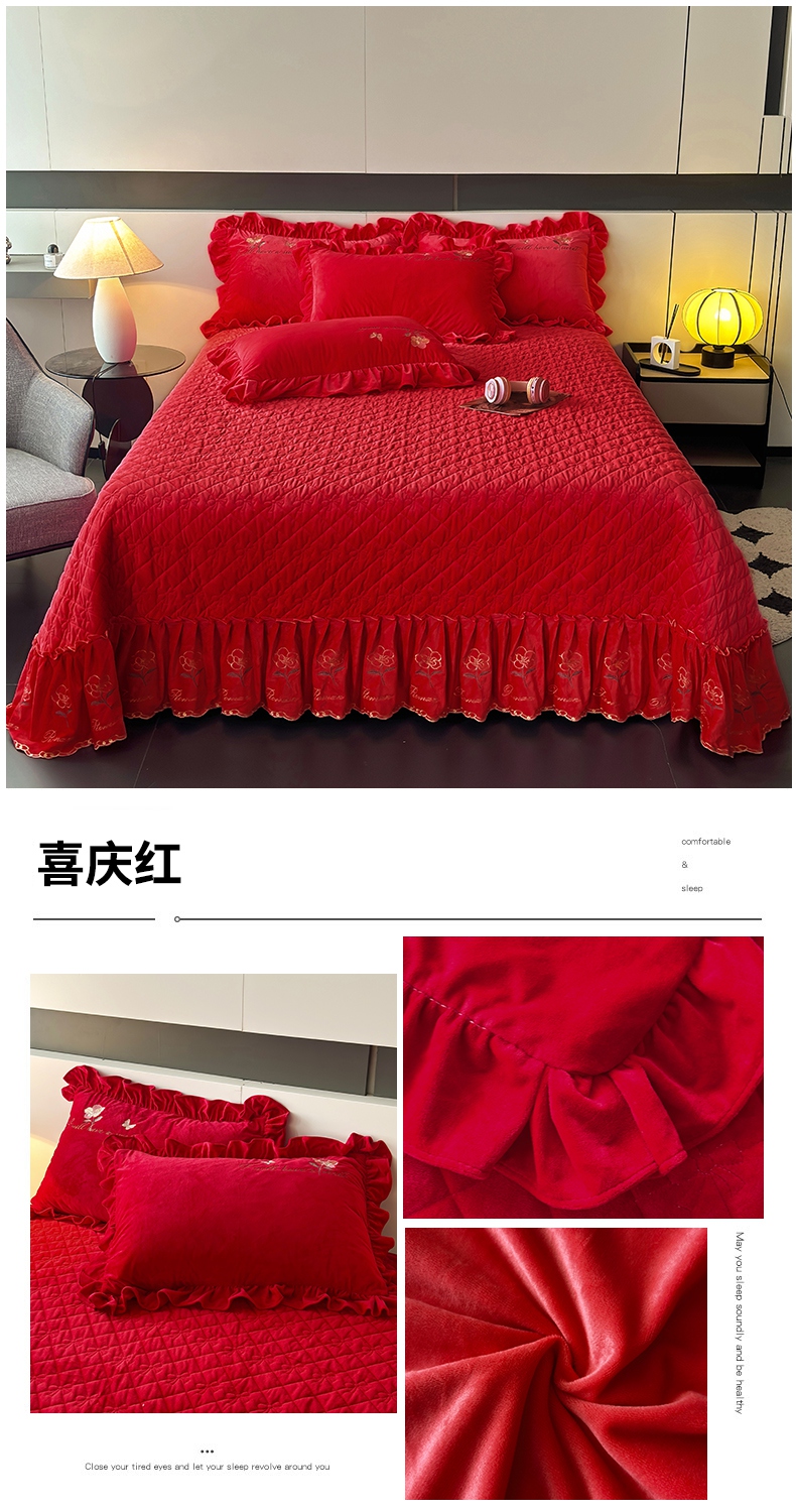 2024新款A类依恋宝宝绒韩版床盖 喜庆红