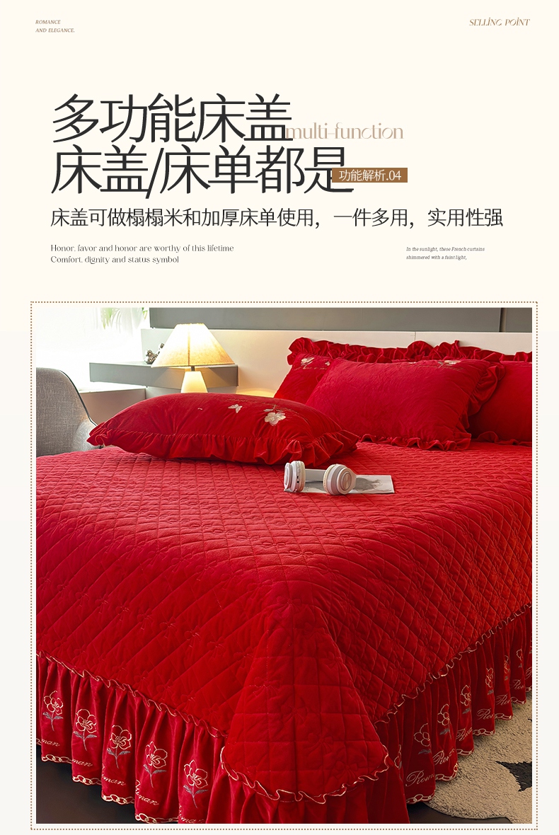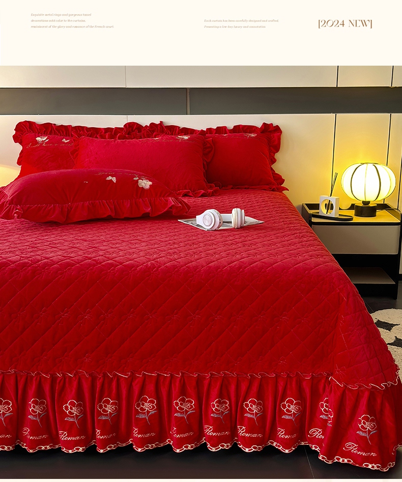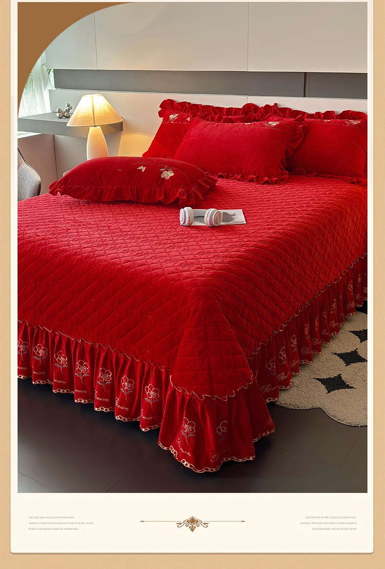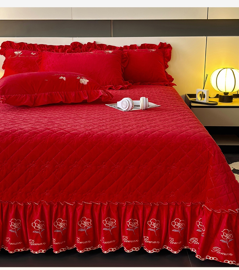 2024新款A类依恋宝宝绒韩版床盖 喜庆红