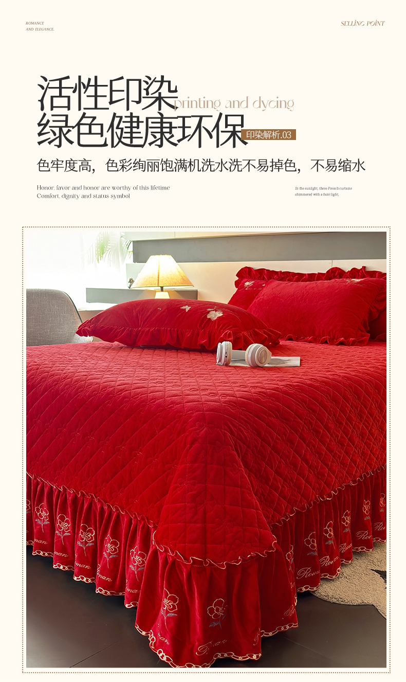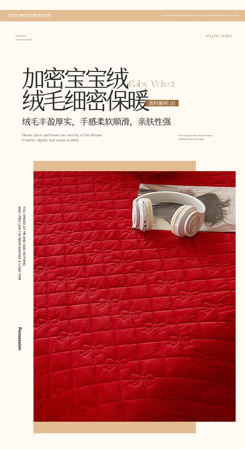 • 91家纺网 家纺一手货源 找家纺 2024新款A类依恋宝宝绒韩版床盖 喜庆红