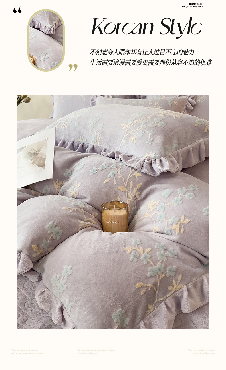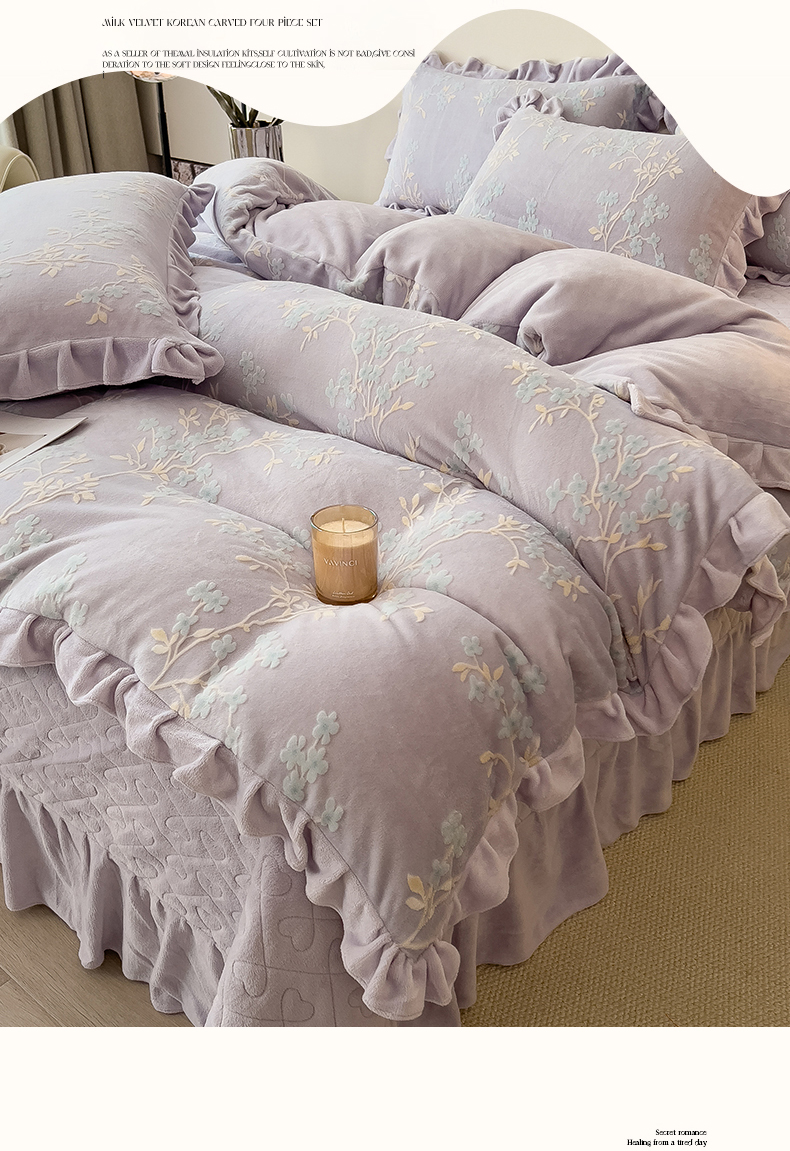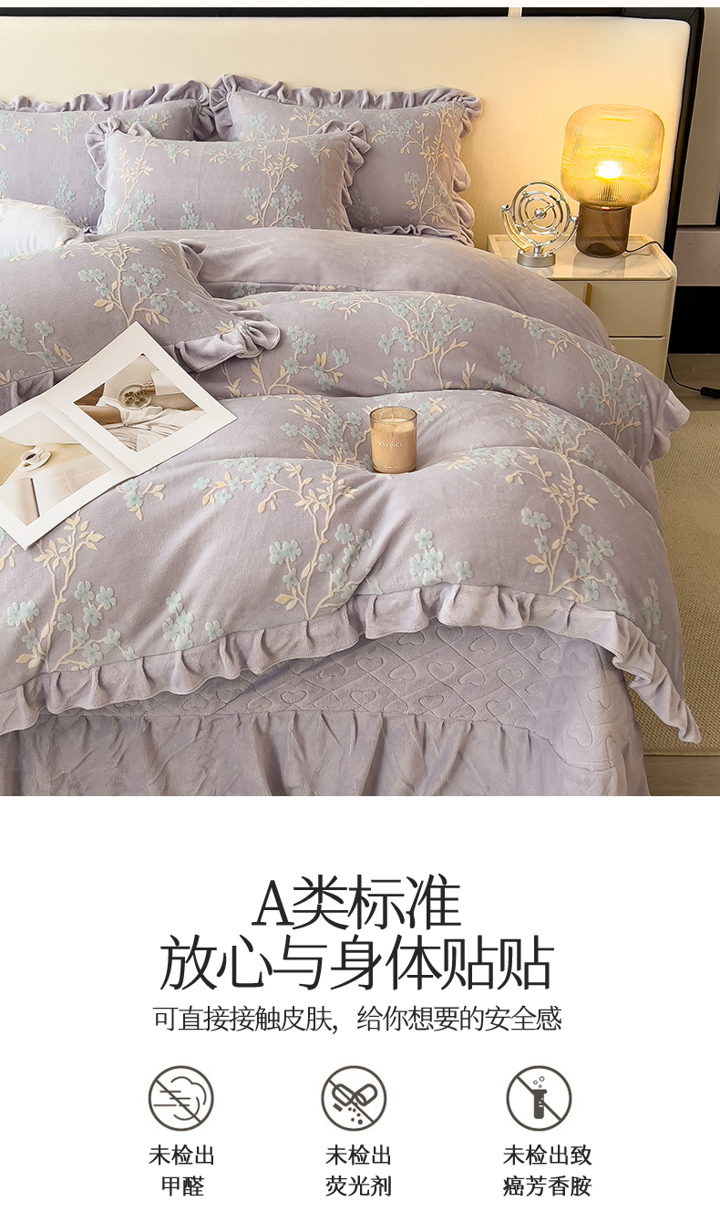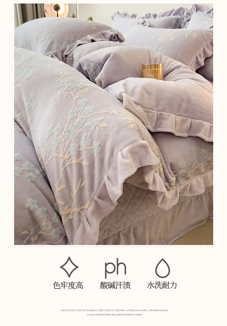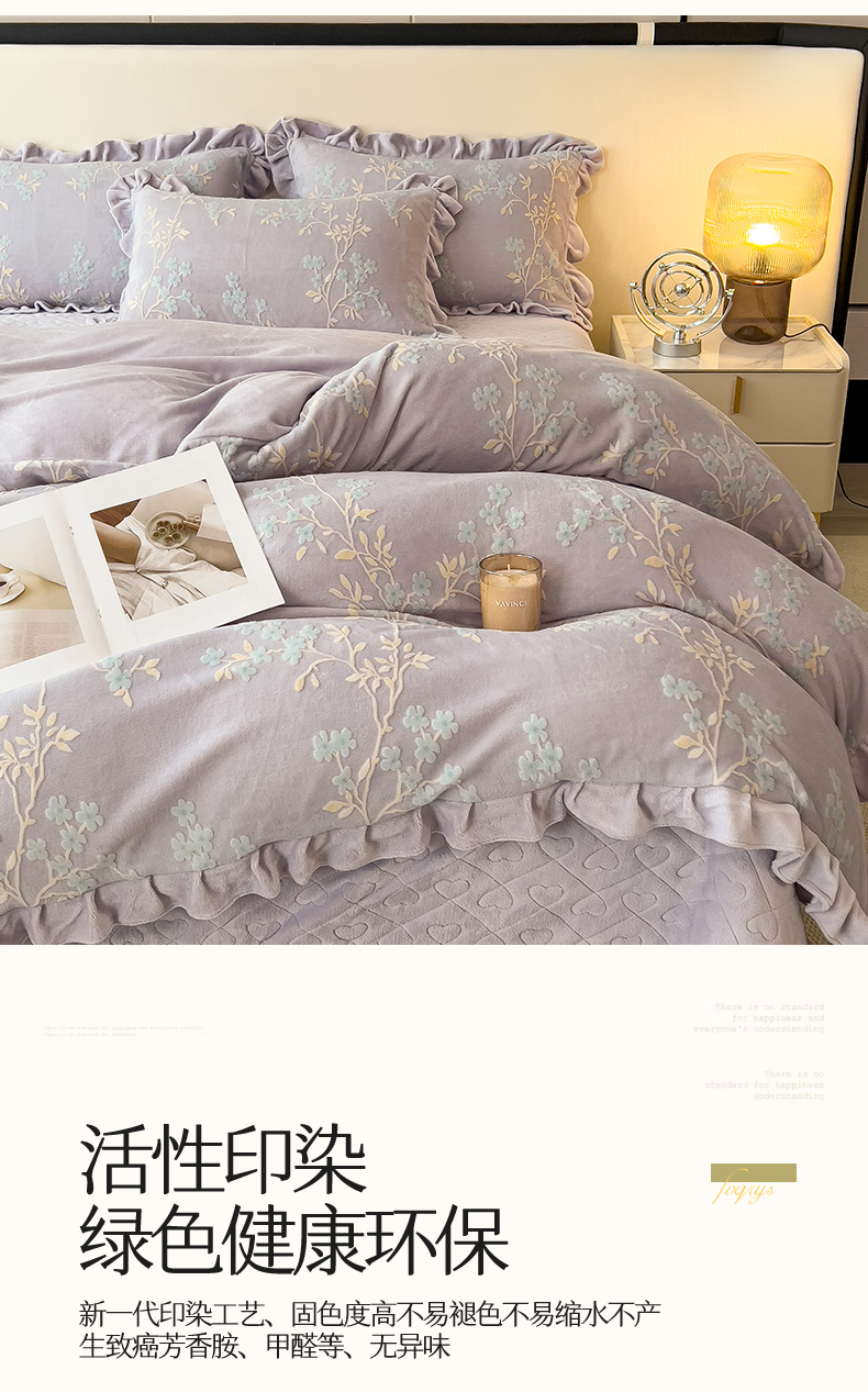 (总)恒爱 2022秋冬水晶绒翩翩花舞夹棉床裙四件套,大红色,豆沙红,橄榄绿,公主粉,桔色,咖啡色,孔雀绿,拉菲红,罗兰紫,玫红色,美人玉,米白色,米驼色,抹茶绿,浅灰色,紫色
