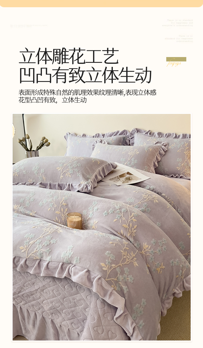(总)恒爱家纺 2025新款牛奶绒立体剪花床盖四件套-心魅,蝴蝶结-美人玉,心魅-浪漫紫,心魅-美人玉,心魅-天空蓝,心魅-象牙白