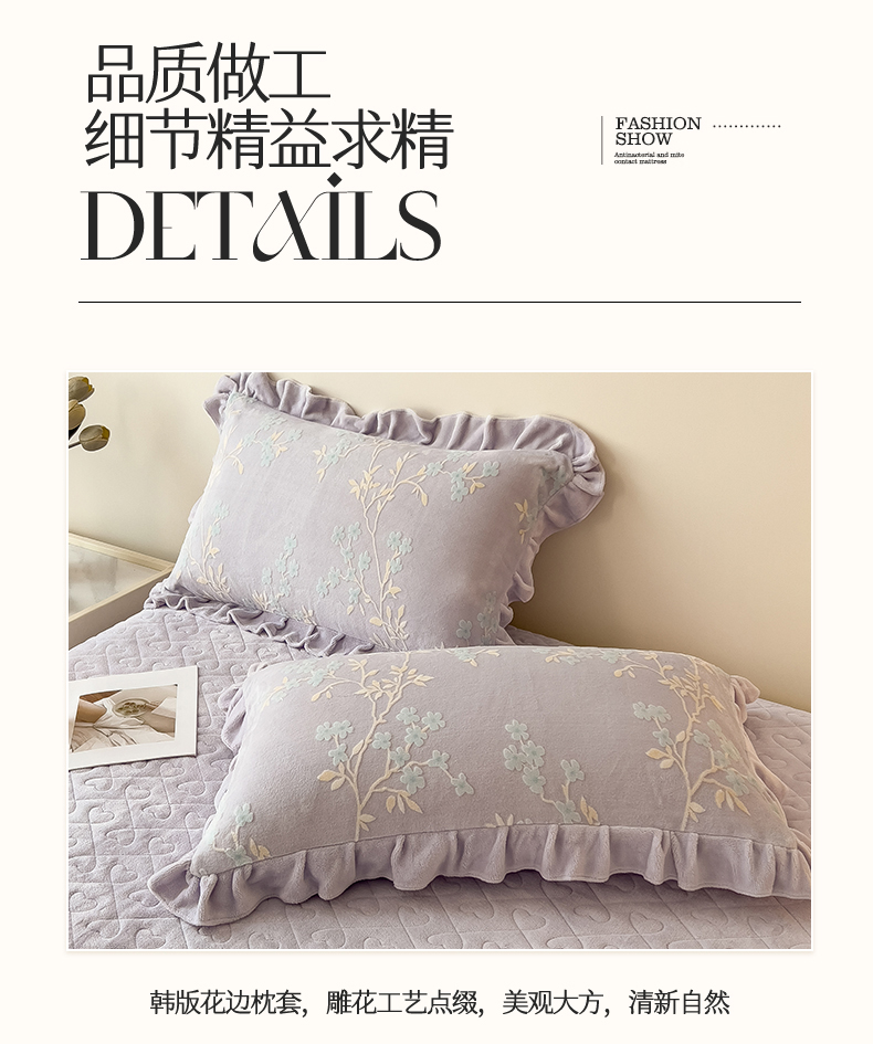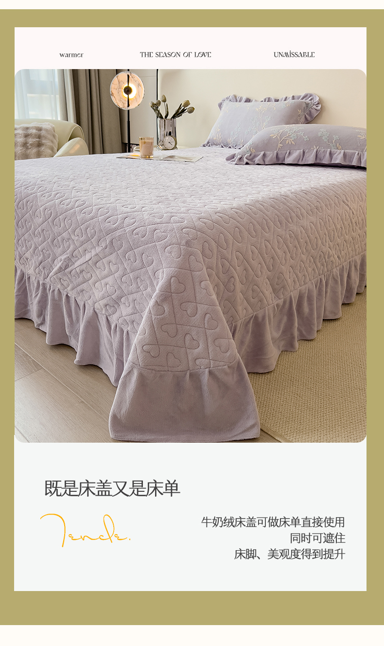 (总)恒爱家纺 2025新款牛奶绒贴布绣夹棉床裙四件套,豆沙红,浪漫紫,天空蓝,温馨粉,象牙白