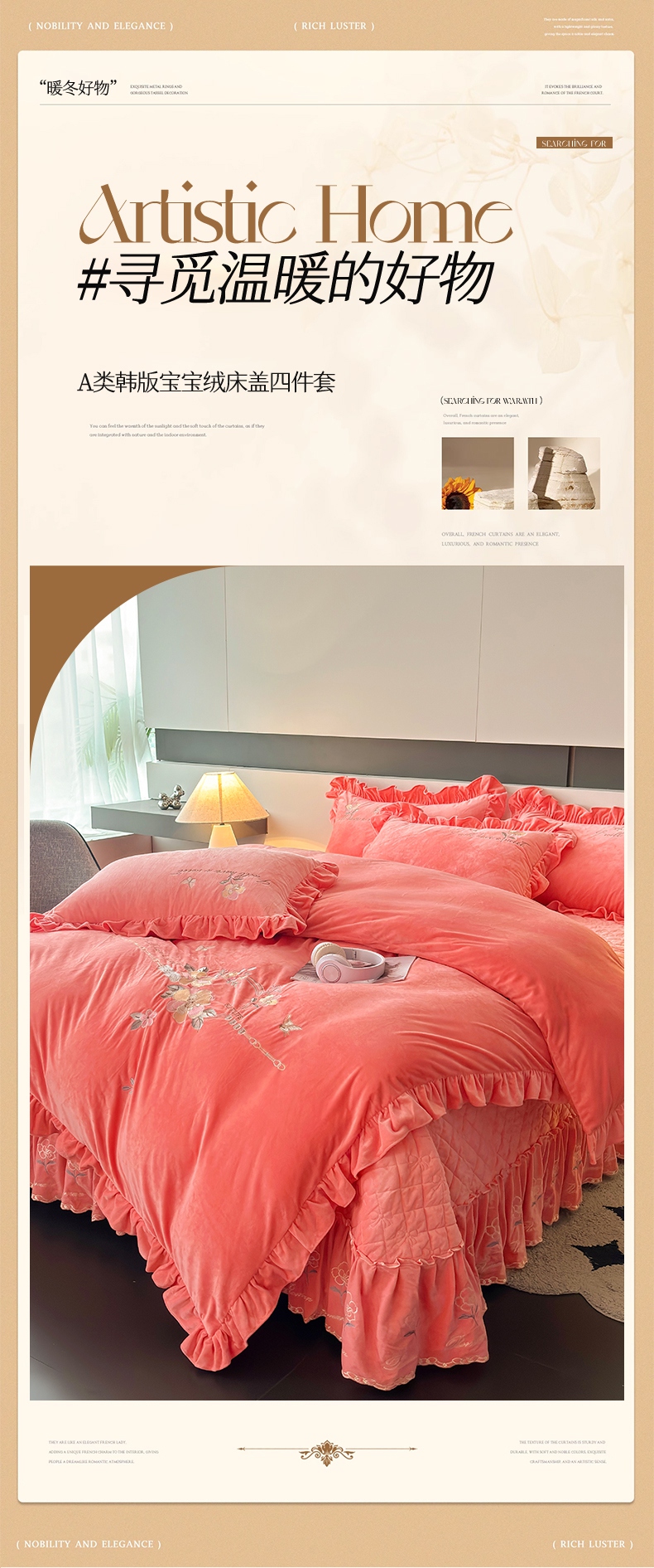 当前位置: 91家纺网 > 商品网购 > 床品套件 > 四件套 > 宝宝绒四件套 > 2024新品A类依恋宝宝绒韩版四件套 梦想粉