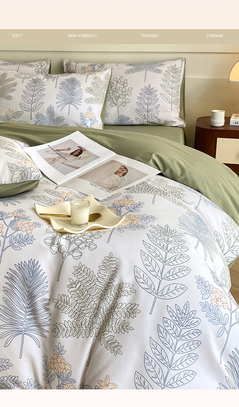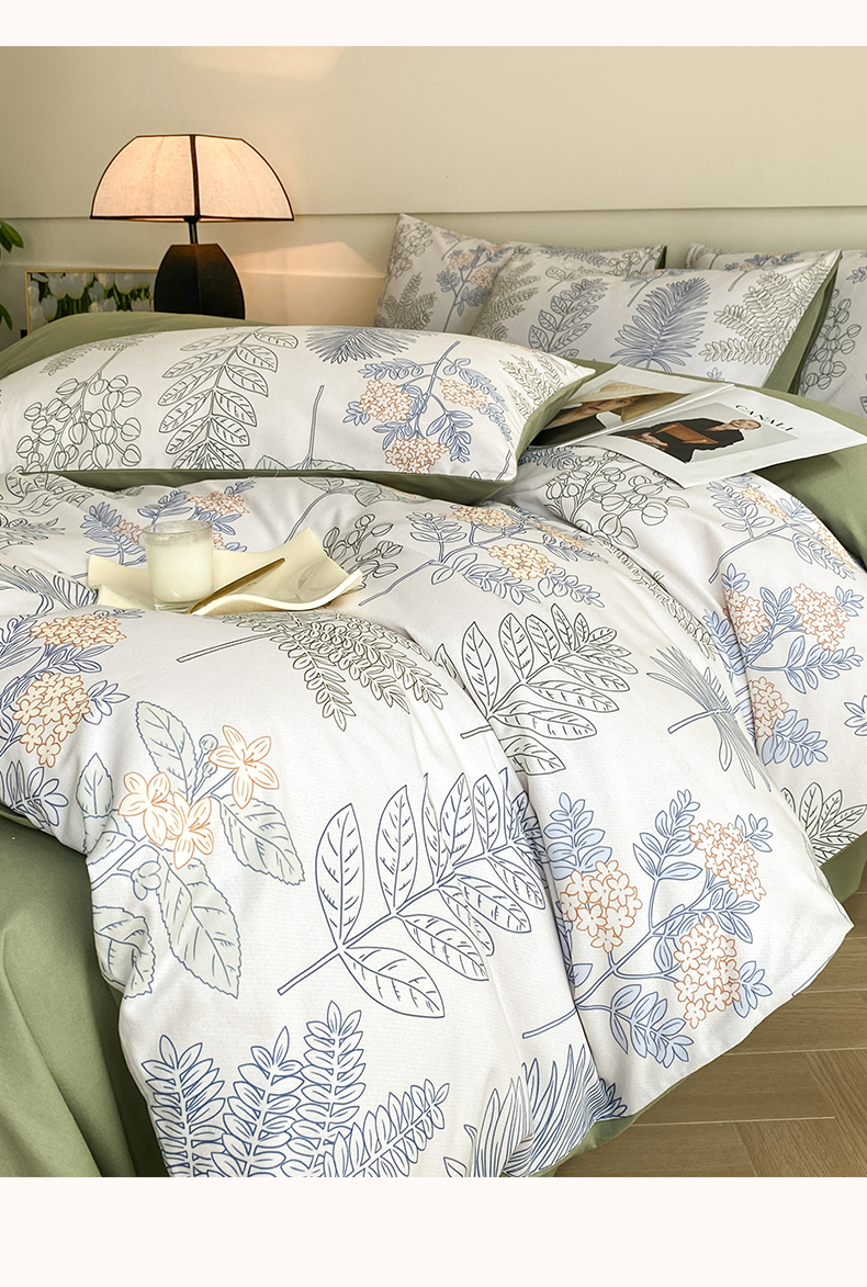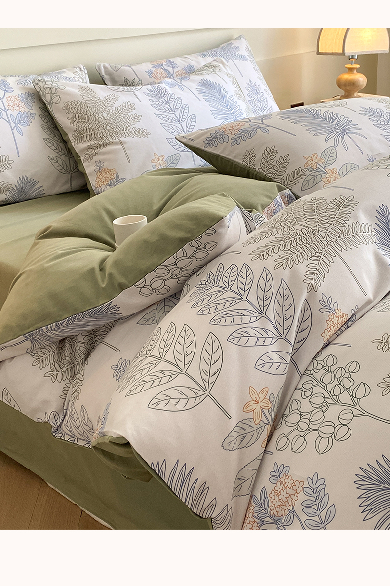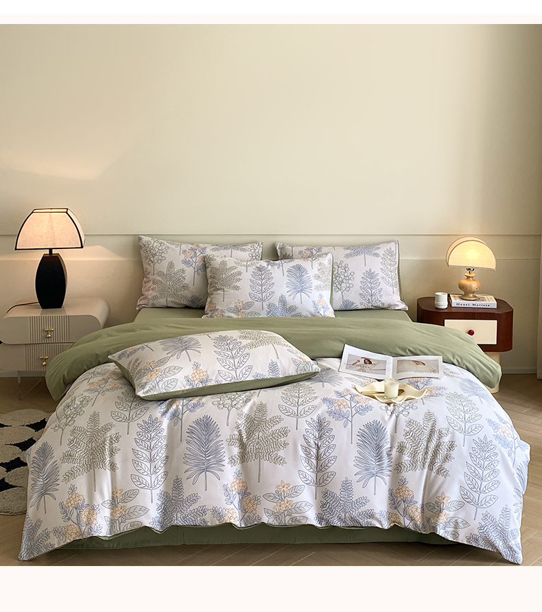雅居纺家纺 2024新款全棉印花磨毛四件套 绿染悠夏
