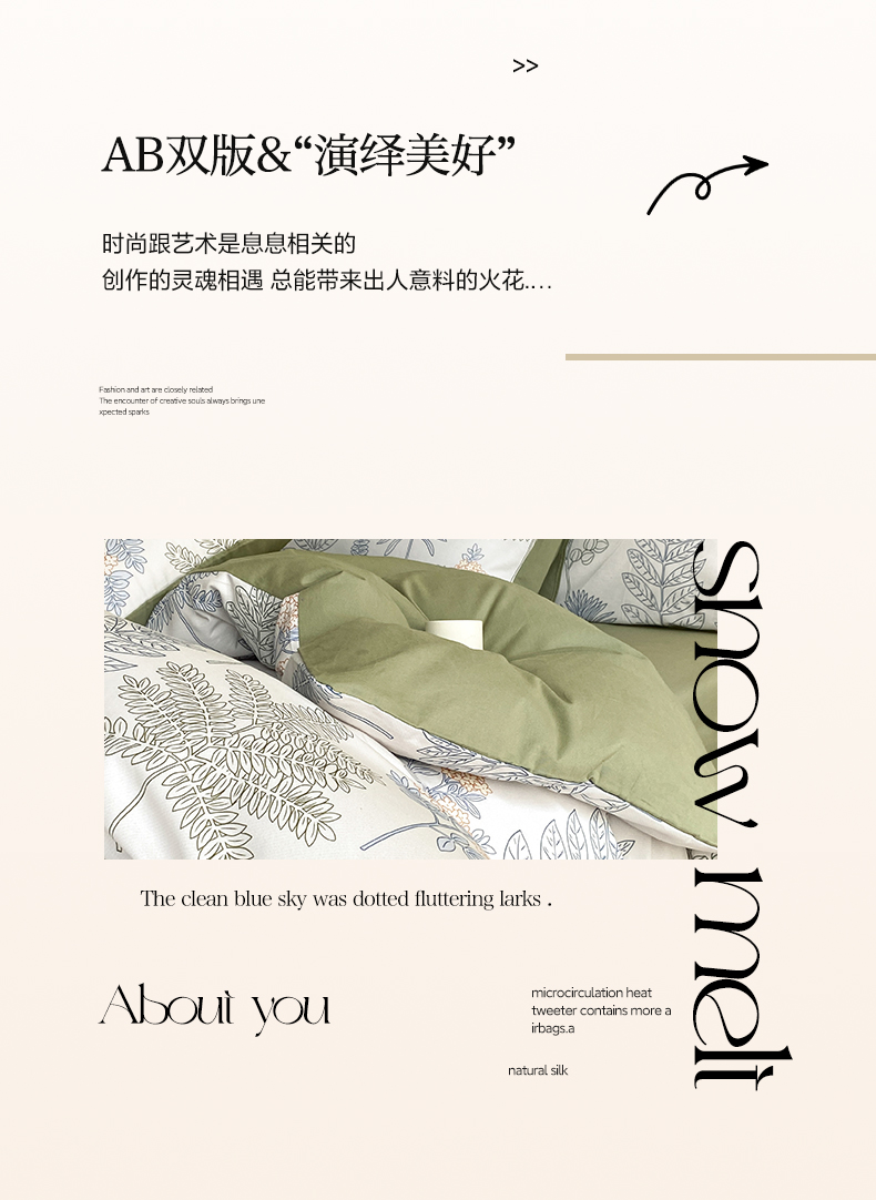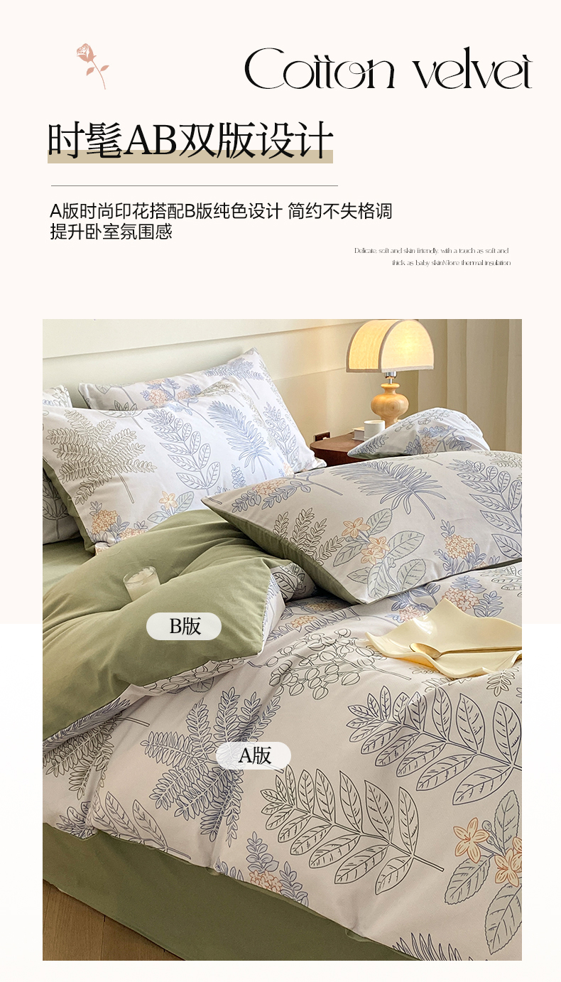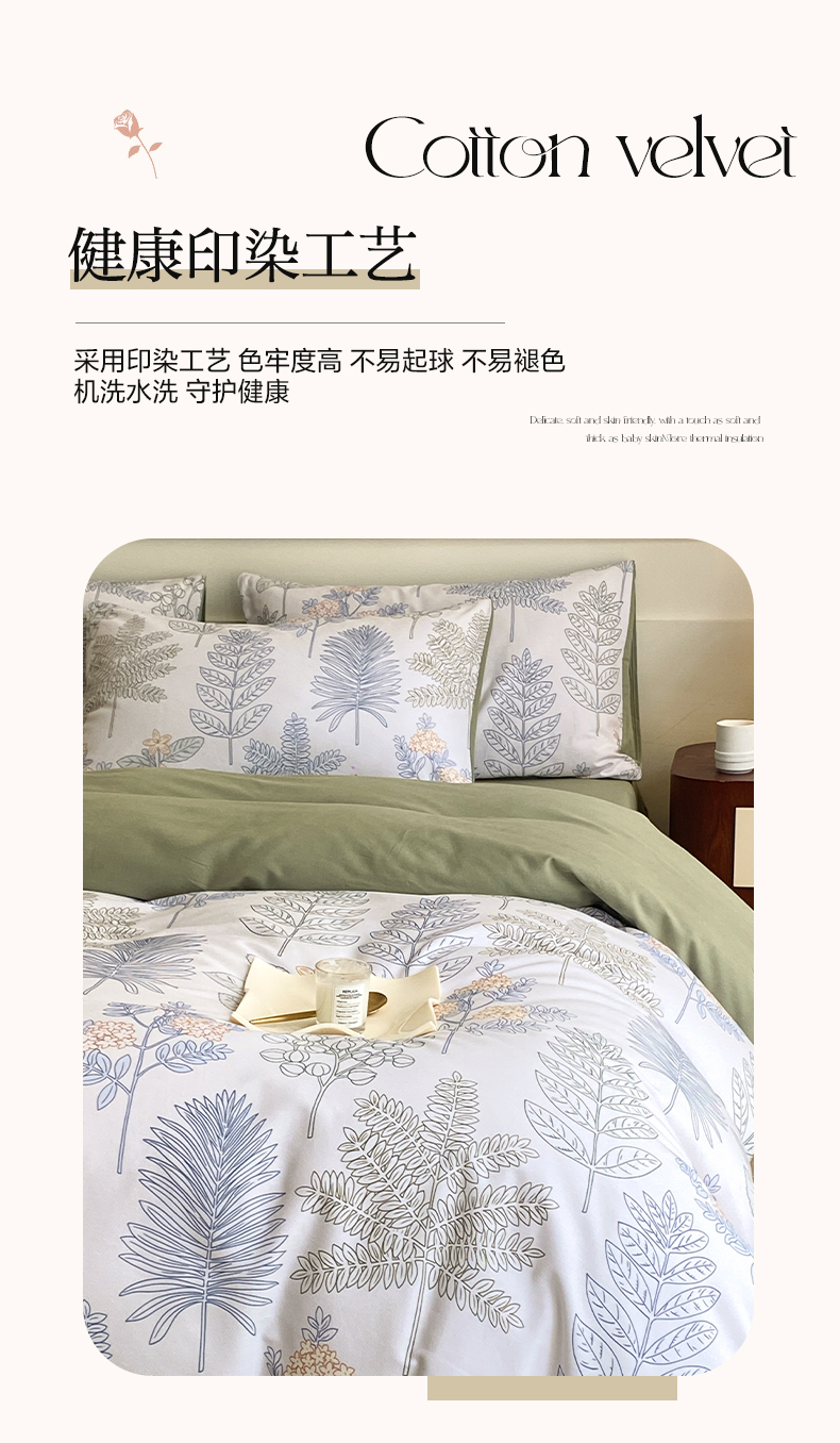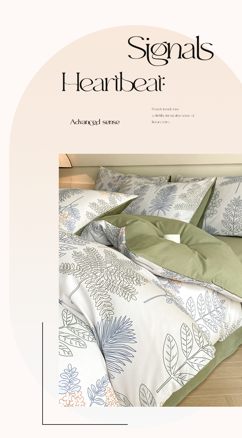 雅居纺家纺 2024新款全棉印花磨毛四件套 绿染悠夏