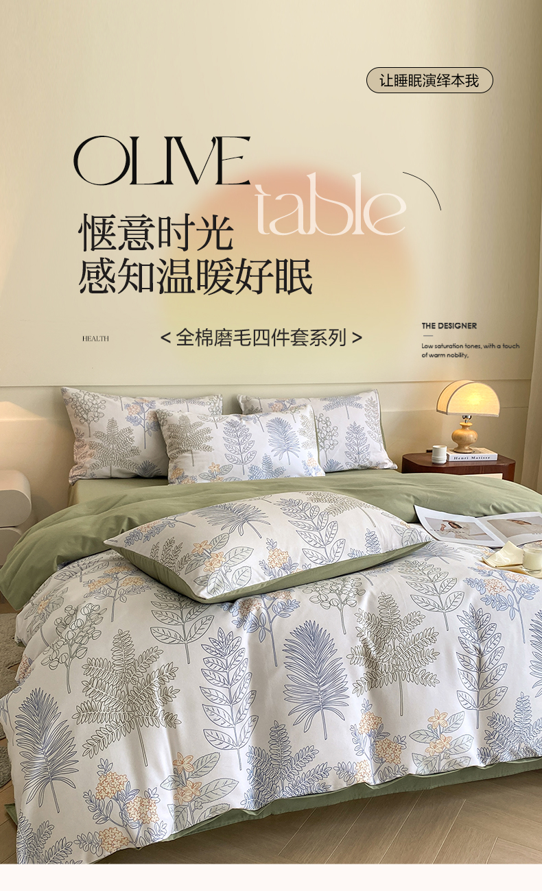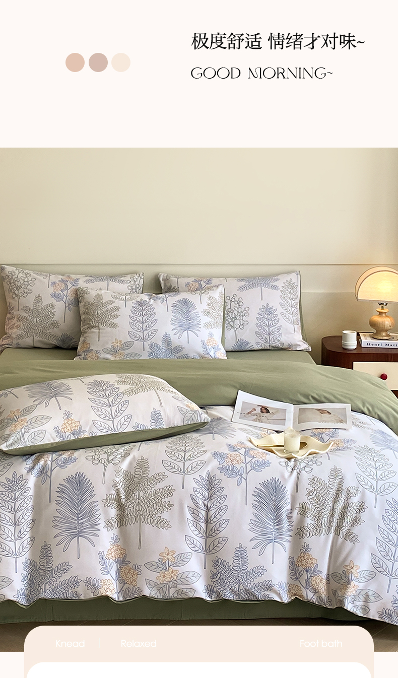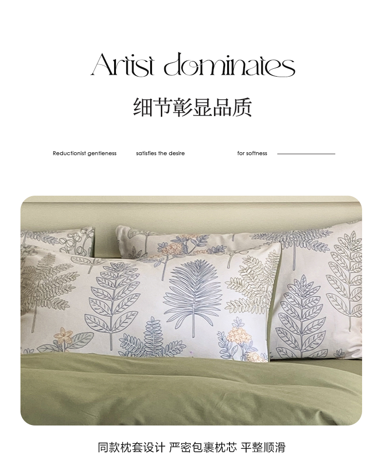 商品名称:雅居纺家纺 2024新款全棉印花磨毛四件套 绿染悠夏