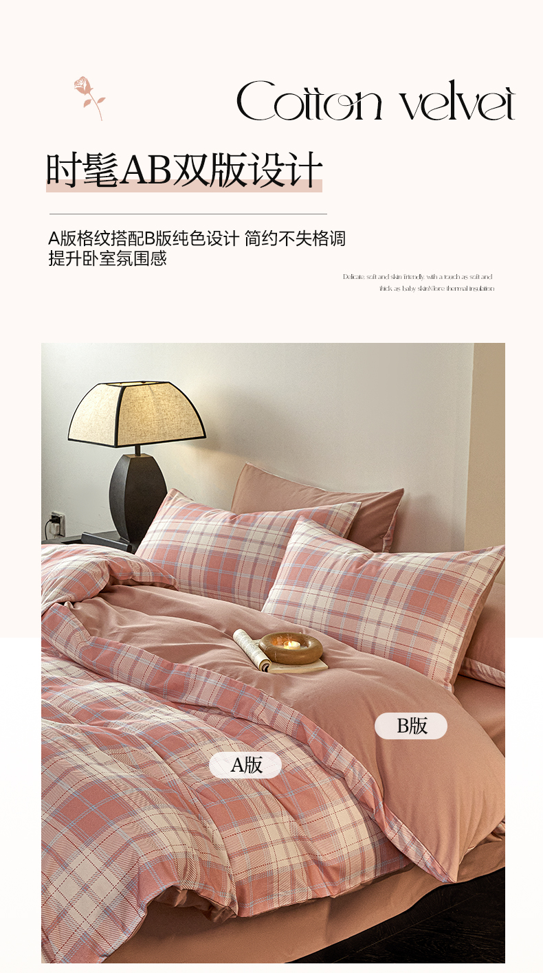 商品名称:雅居纺家纺 2024新款全棉印花磨毛四件套 旋律-粉格