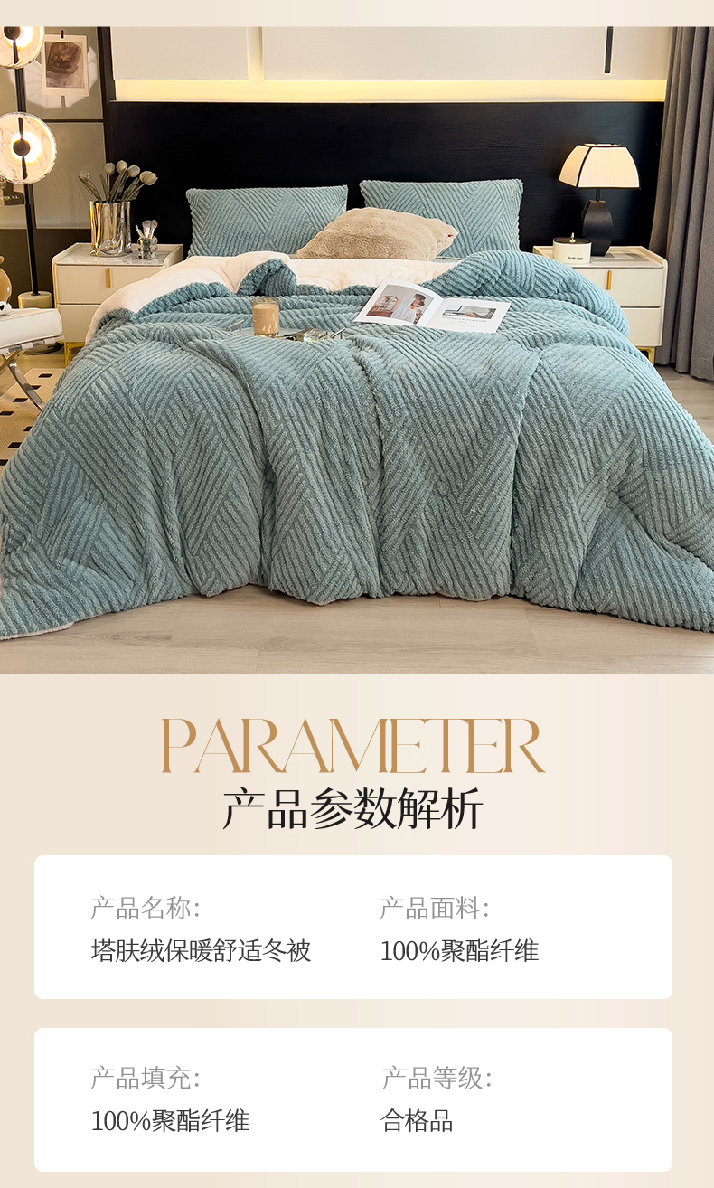 • 91家纺网 家纺一手货源 找家纺 2024新品塔肤绒保暖舒适冬被子被芯 布拉格-浅灰蓝