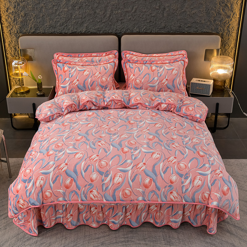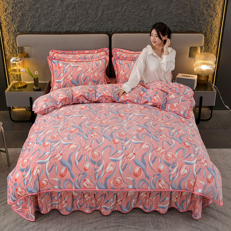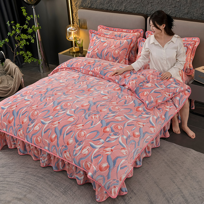 2023直播爆款印花牛奶绒四件套220克法莱绒印花吊边款四件套简约格调,简约格调