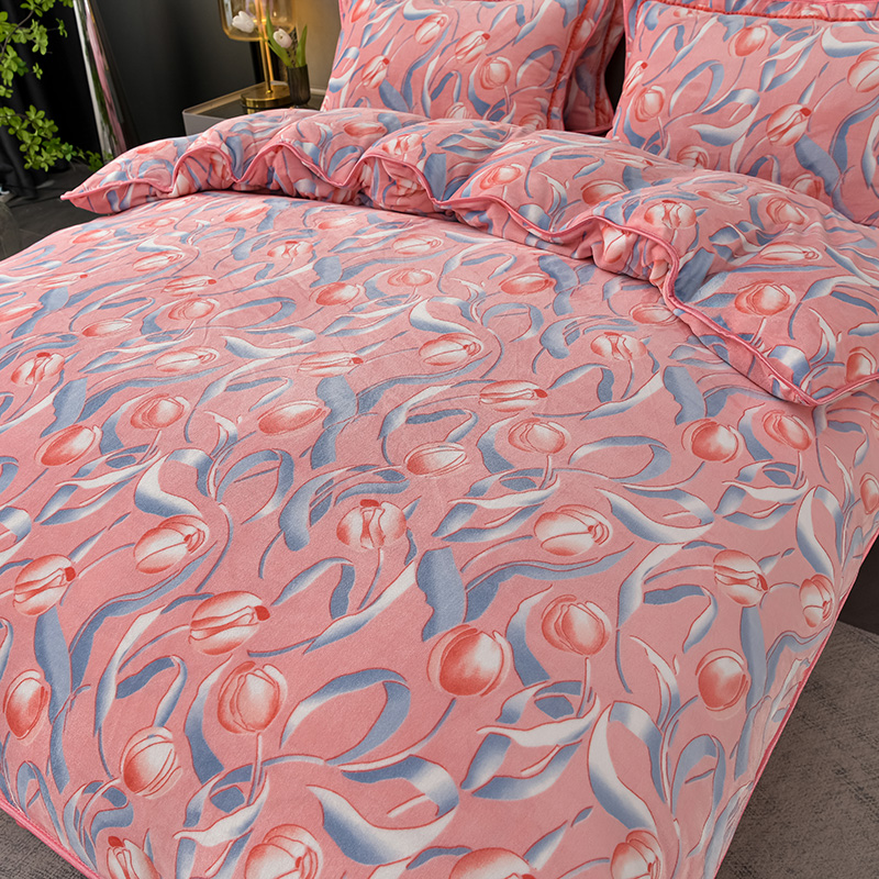 2025直播爆款印花牛奶绒四件套8斤法莱绒印花四件套甜蜜爱情,甜蜜爱情