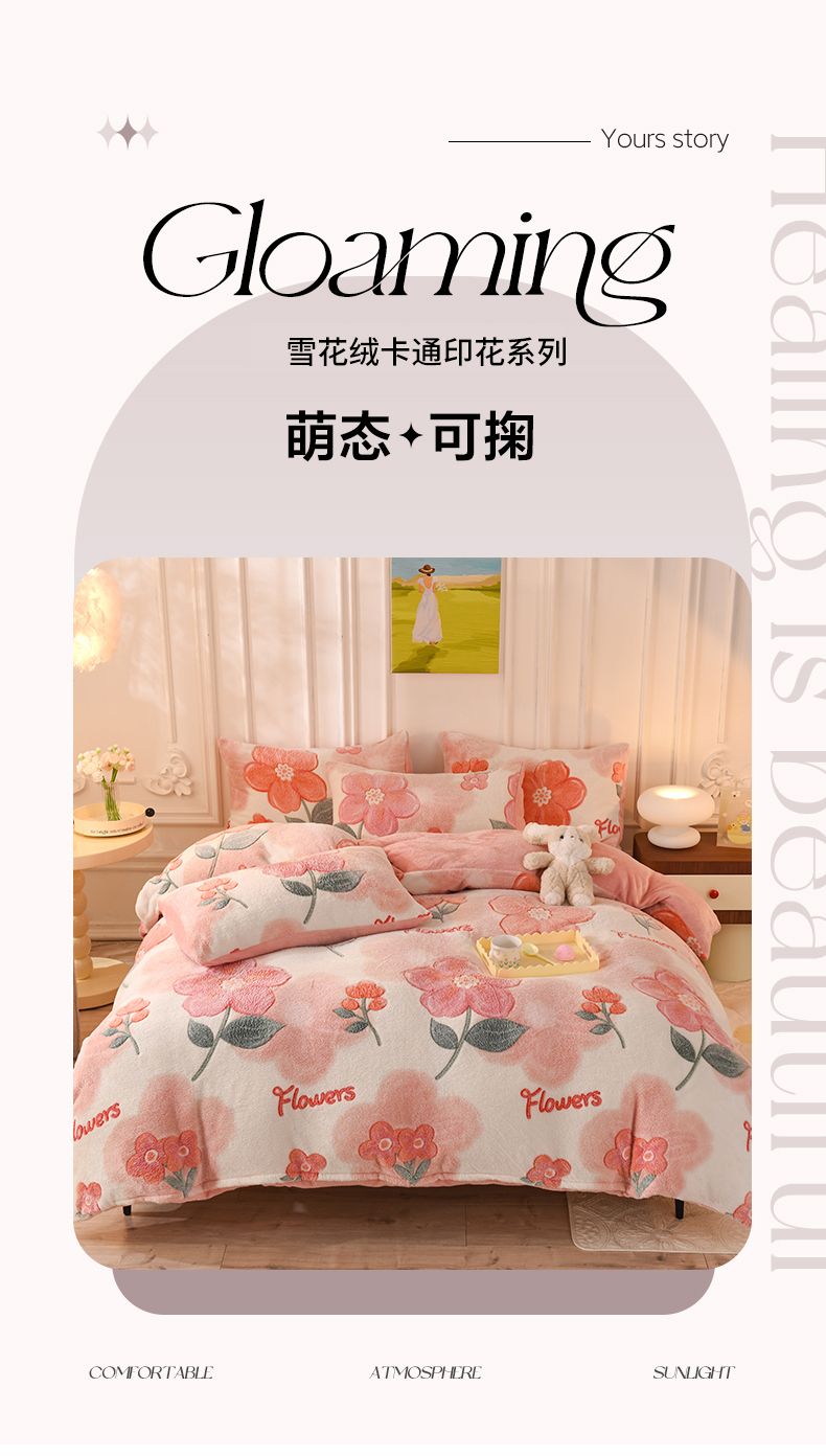 当前位置: 91家纺网 > 商品网购 > 床品套件 > 四件套 > 其它四件套 > 慕梵家居 2024新款雪花绒卡通四件套 繁花似锦