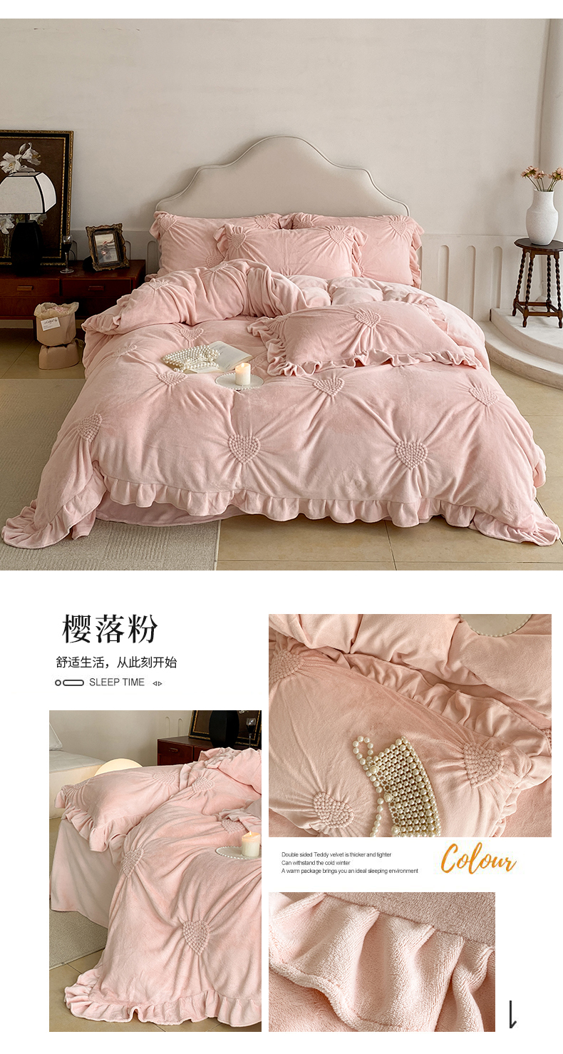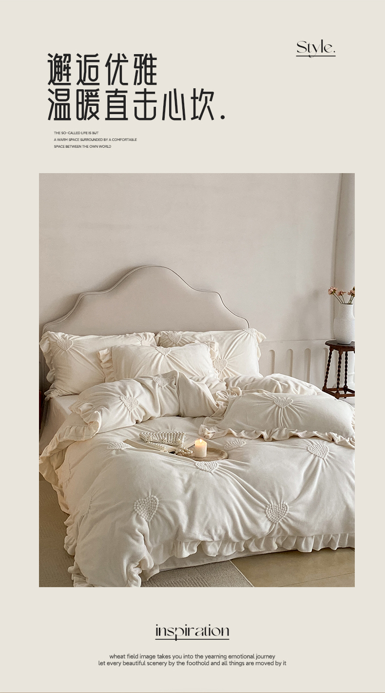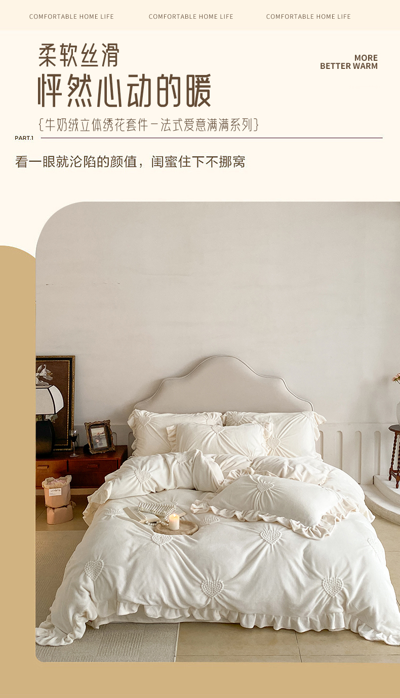 (总)2024新款牛奶绒爱心法式立体刺绣系列四件套