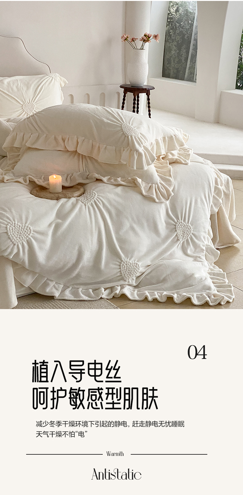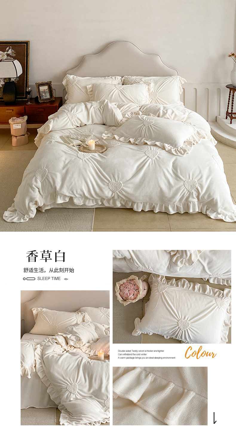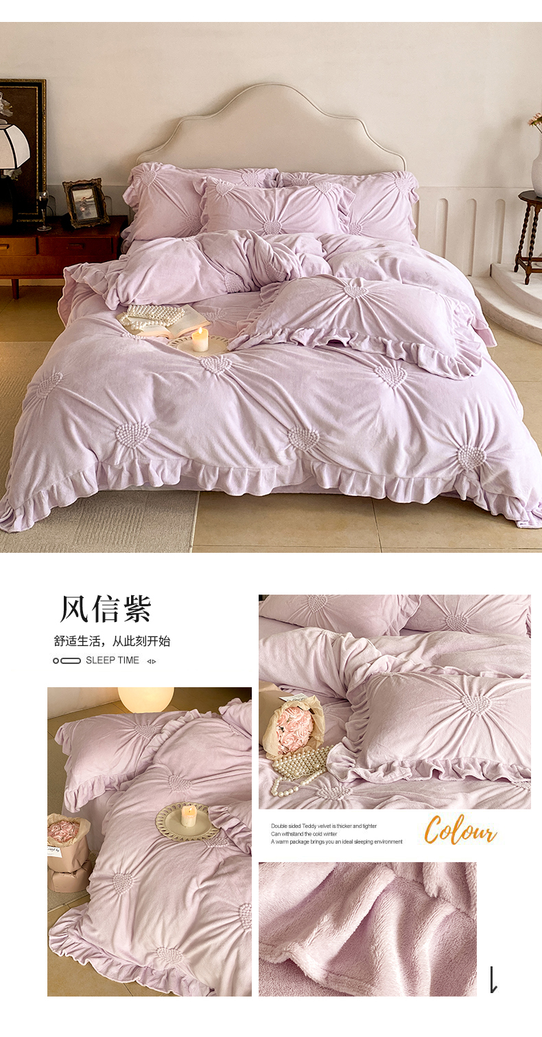 (总)2024新款牛奶绒爱心法式立体刺绣系列四件套