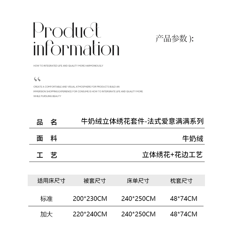 商品名称:(总)2024新款牛奶绒爱心法式立体刺绣系列四件套