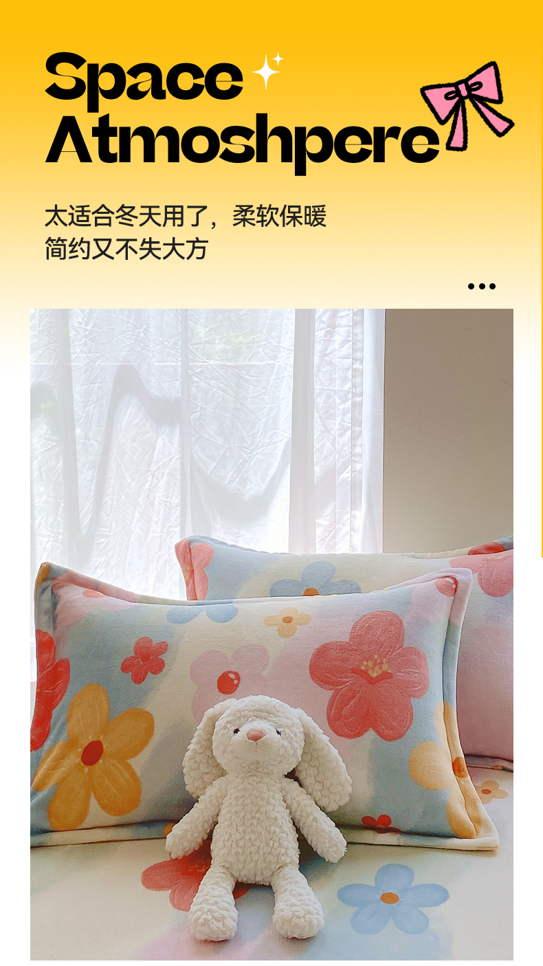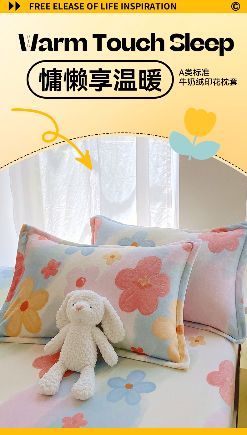 凯儿家纺 2024新款A类牛奶绒印花枕套 彩韵花香