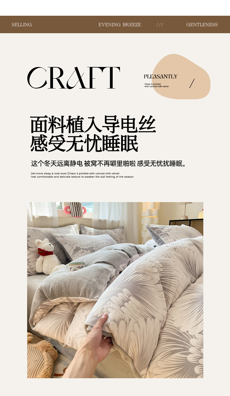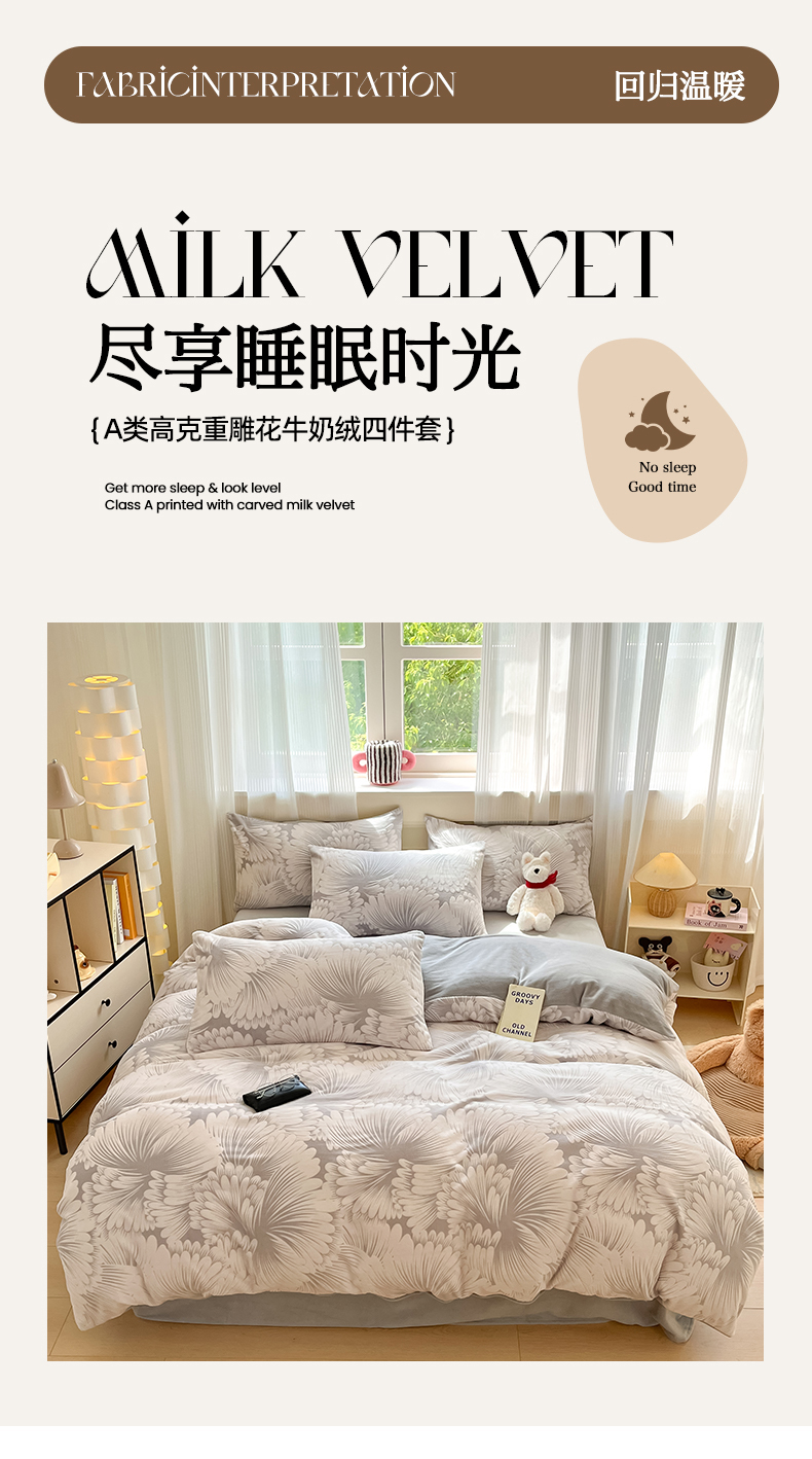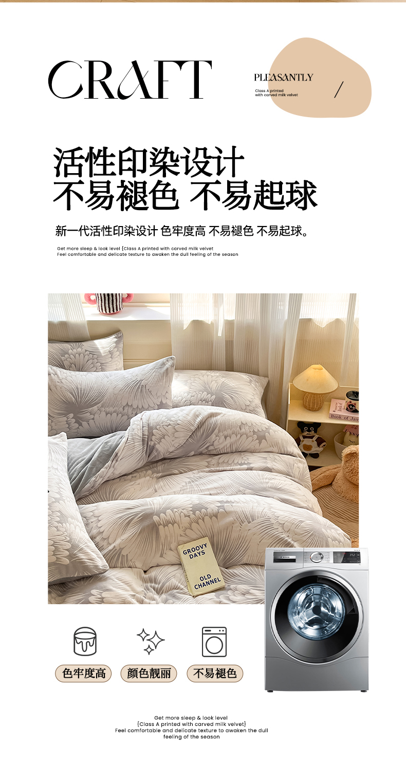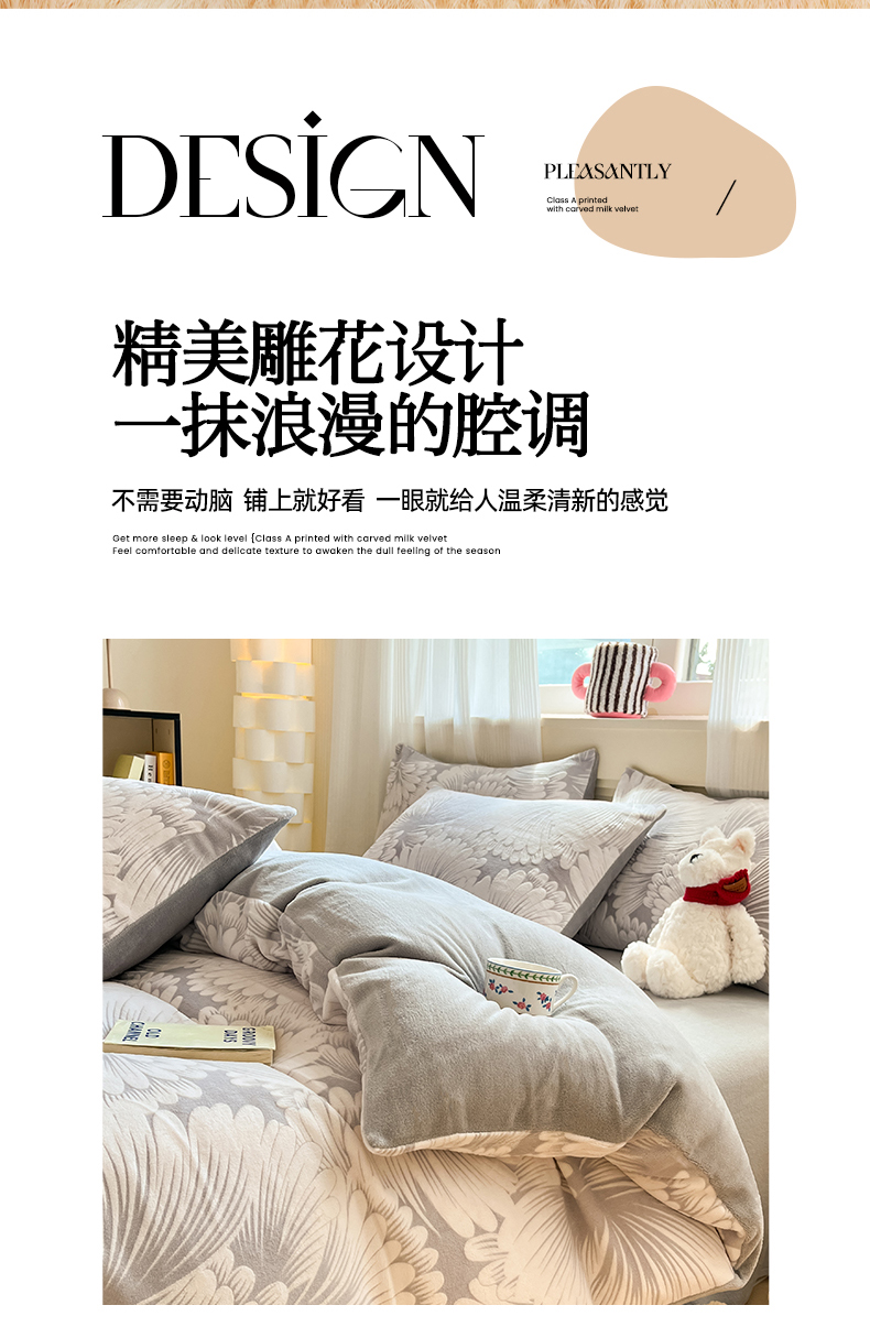 (总)莱茵家居 2025新款高克重牛奶绒烂花四件套,眠语-粉,眠语-蓝,暖格-粉,暖格-咖,暖格-蓝