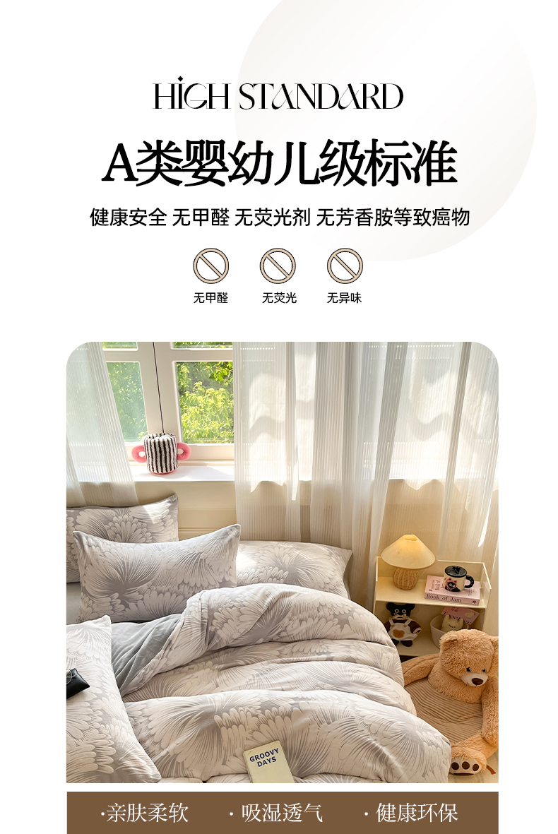(总)莱茵家居 2025新款全棉三层纱厚织提花磨毛四件套,花楹-雾蓝,漫叙-茶红,漫叙-卡其,漫叙-喃灰,漫叙-芜青,漫叙-鸢紫,娑竹-木棕,娑竹-雾蓝,悠痕-卡其,悠痕-云灰