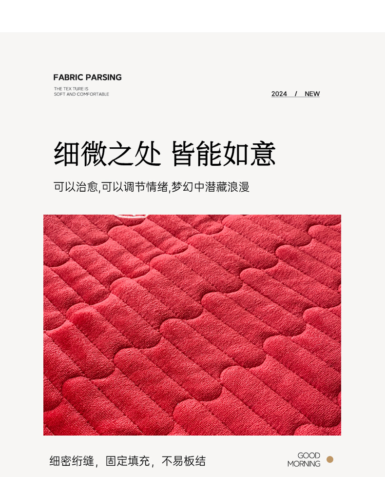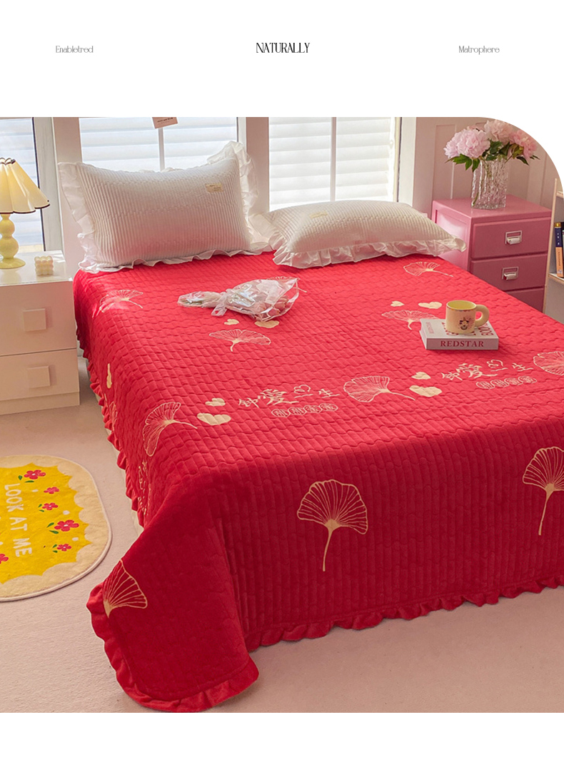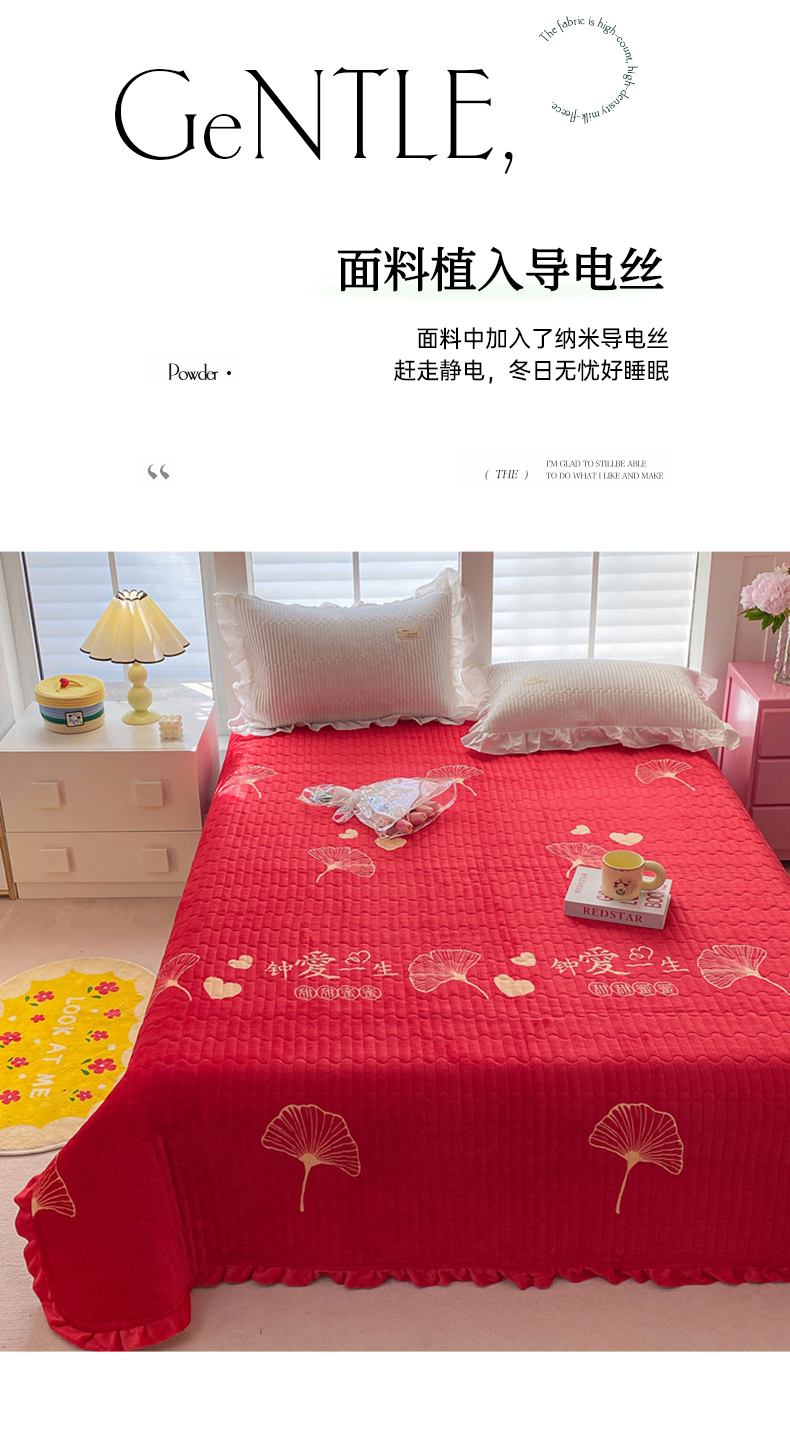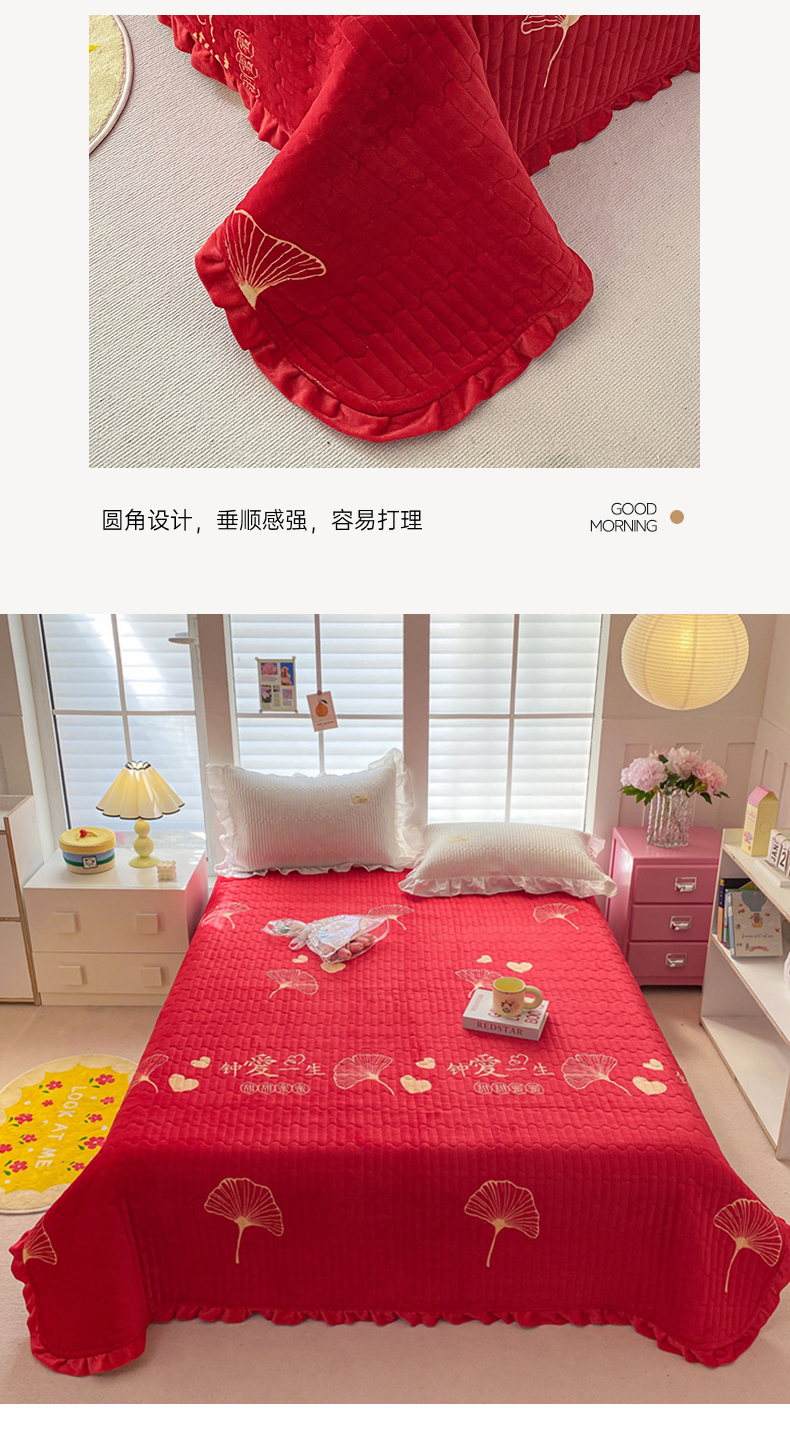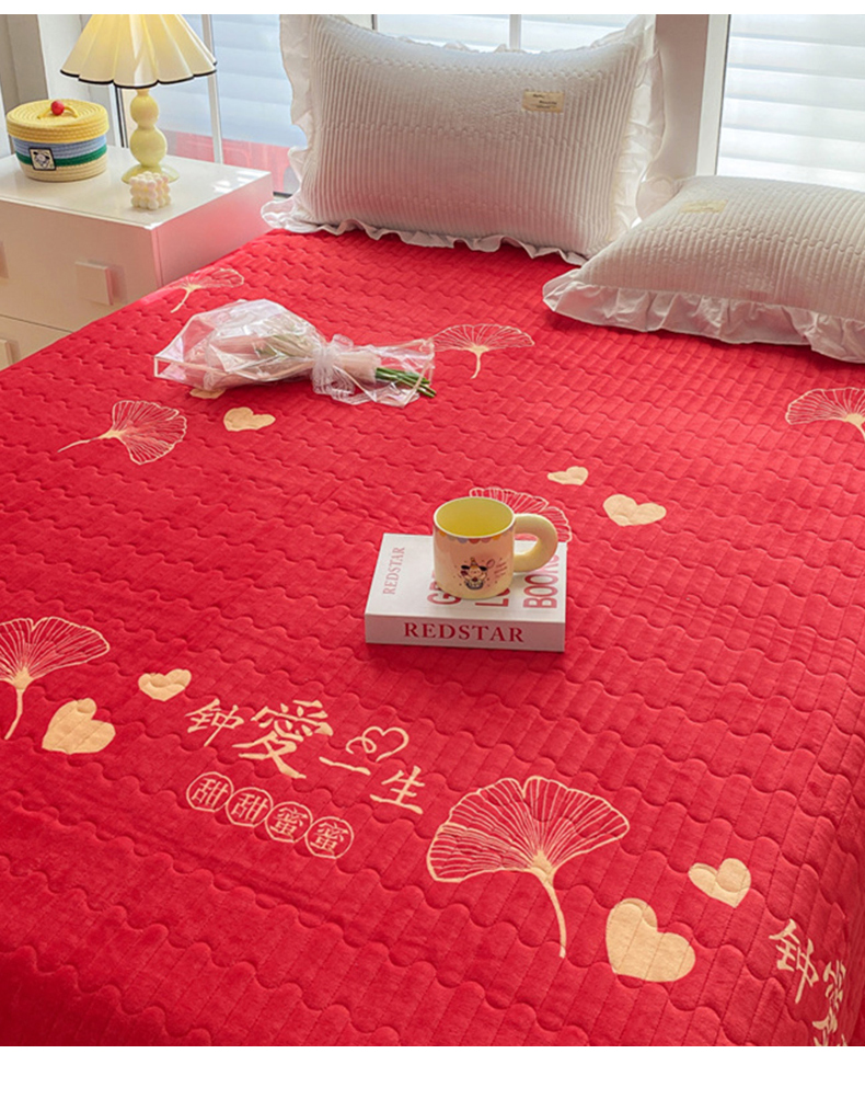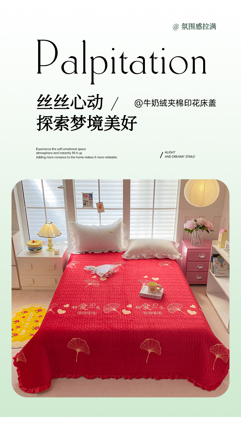 胜权家纺 2024秋冬新款印花牛奶绒加厚保暖圆角花边夹棉床盖 钟爱一生红
