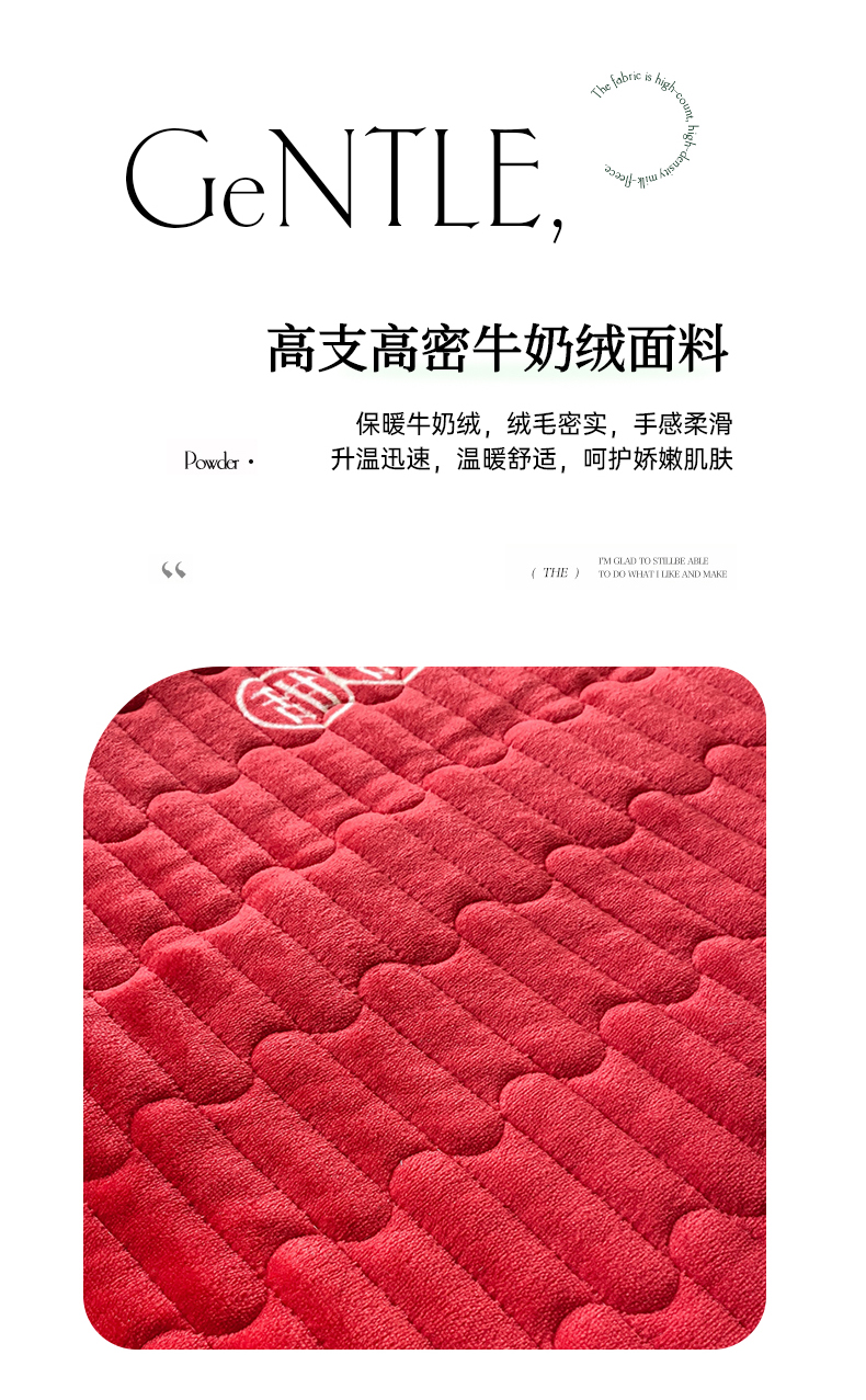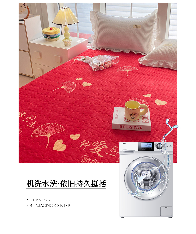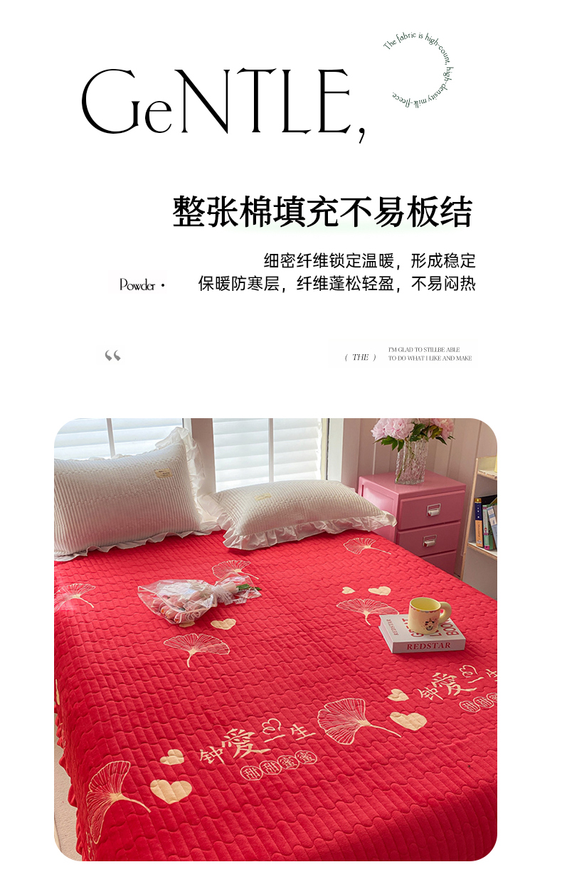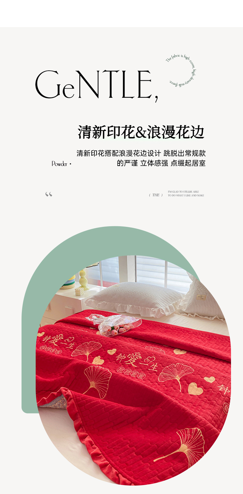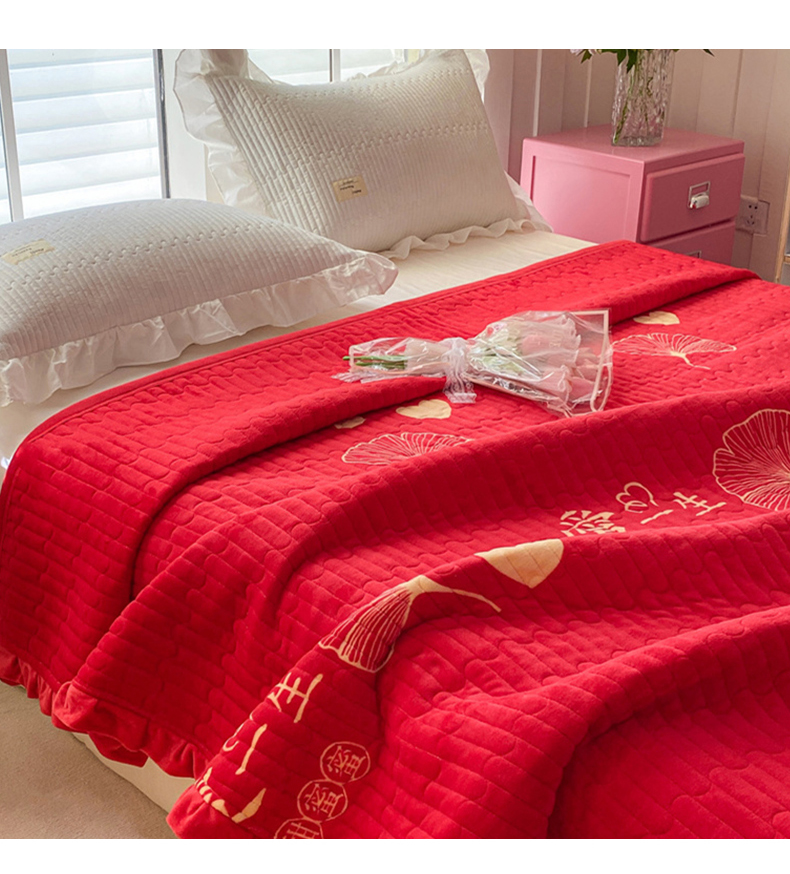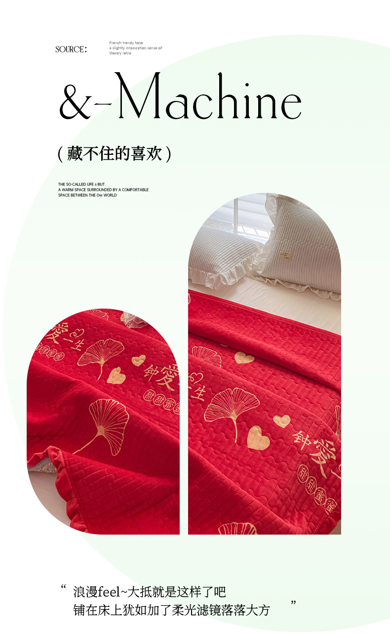 商品名称:胜权家纺 2024秋冬新款印花牛奶绒加厚保暖圆角花边夹棉床盖 钟爱一生红