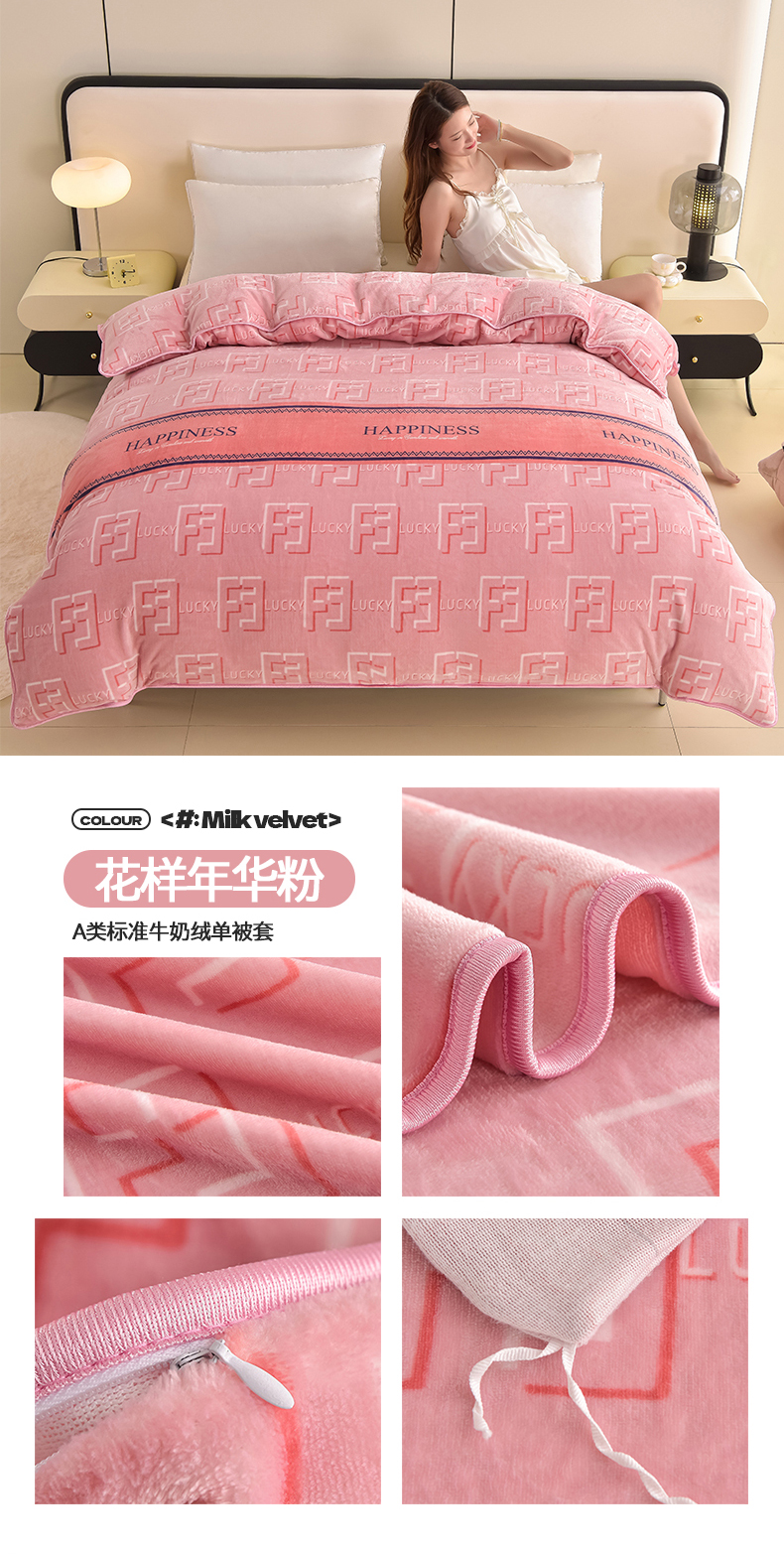 商品名称:佳品居 2025新款A类牛奶绒印花单被套 花样年华粉